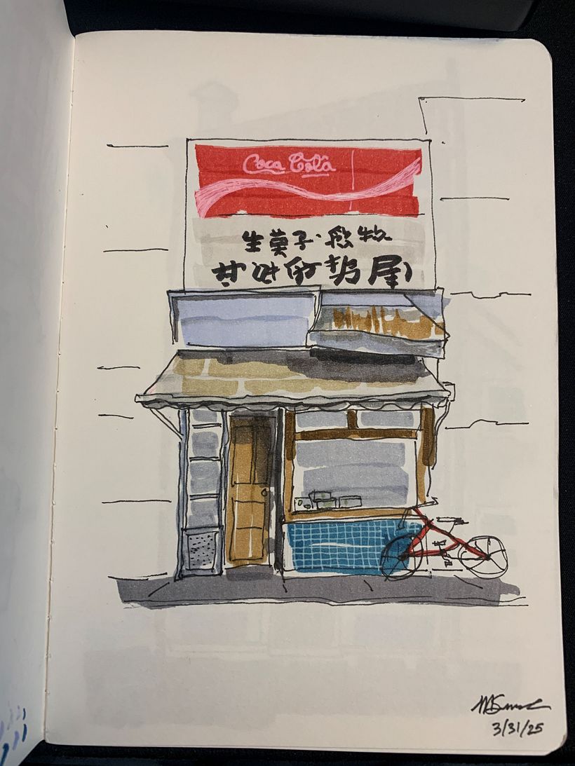I was inspired by a watercolor painting course I took in school, my professor was an old Chinese woman who moved to America for college to study architecture and landscape design. She pushed us to find what we liked to do while giving us many opportunities to explore watercolor and other mediums (followed up with very blunt, but helpful feedback). After taking this course I began to draw somewhat regularly and looked at the work of artists like Sketching Scottie on YouTube, Albert Kiefer, Draw Sessions on YouTube, Mattias Adolfsson, and a few others. Scottie and Albert Kiefer have been great inspirations stylistically and Mattias Adolfsson and Draw Sessions have helped me open up and explore different techniques and mindsets while I'm sketching.