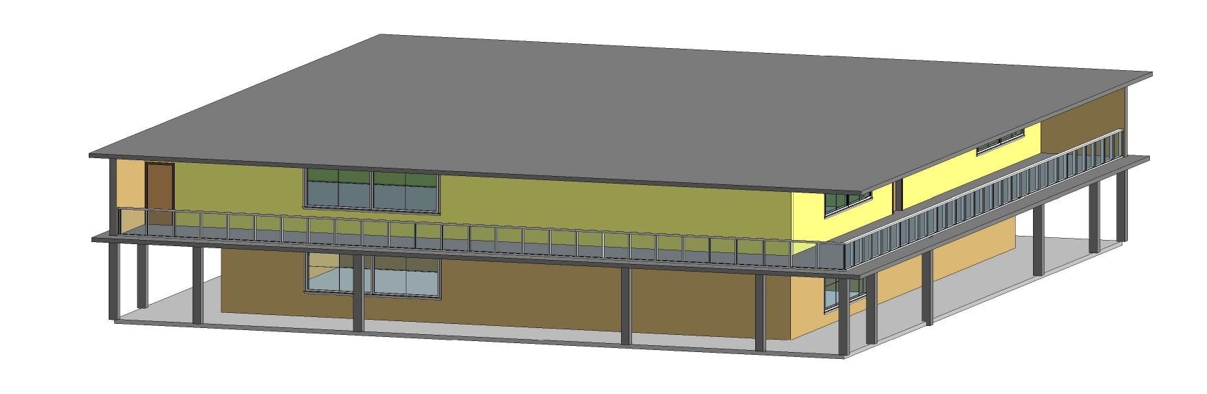 2. Developing the 3D model in Revit by adding walls, doors, windows, floors, and roofs.