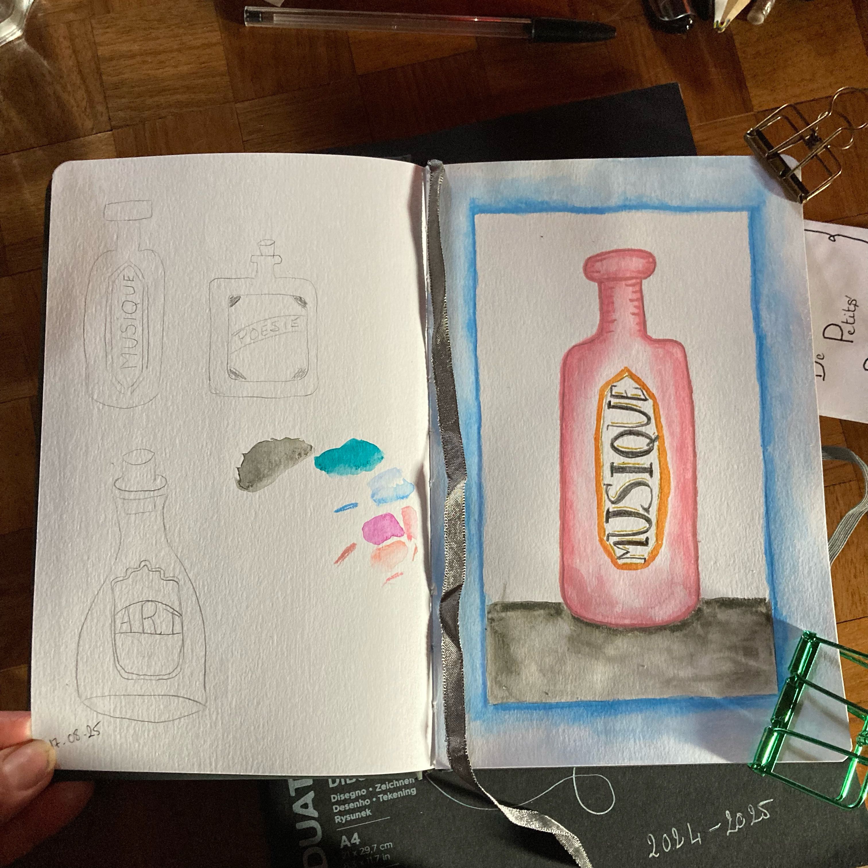 J’ai bien aimé cet exercice, j’ai déjà fait deux bouteilles et j’ai l’esquisse d’une troisième.