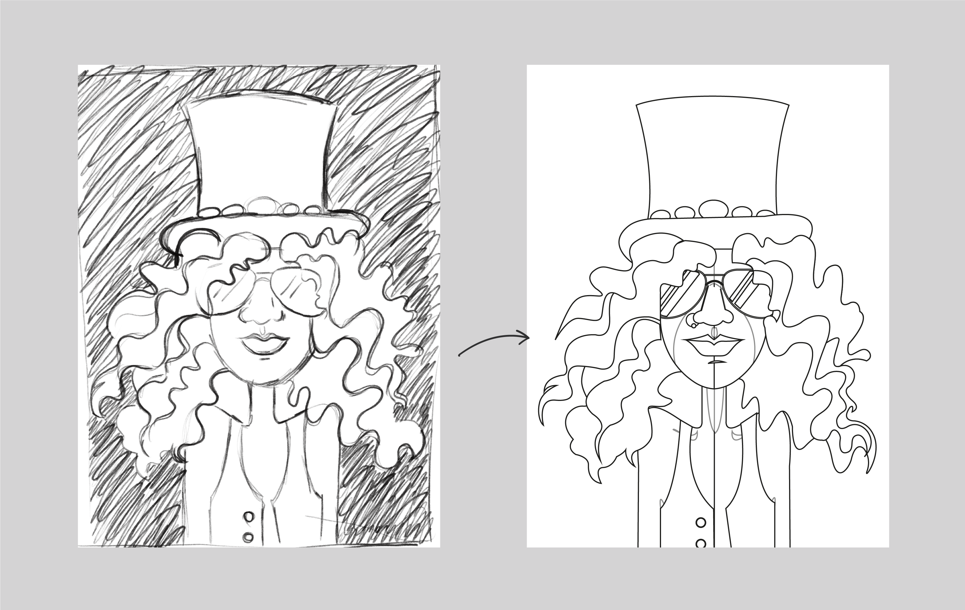 A ideia foi captar sua essência — atitude, acessórios e atmosfera do rock’n’roll — sem buscar um retrato realista. Neste passo a passo, você acompanha como a ilustração nasceu do gesto inicial até os acabamentos finais.