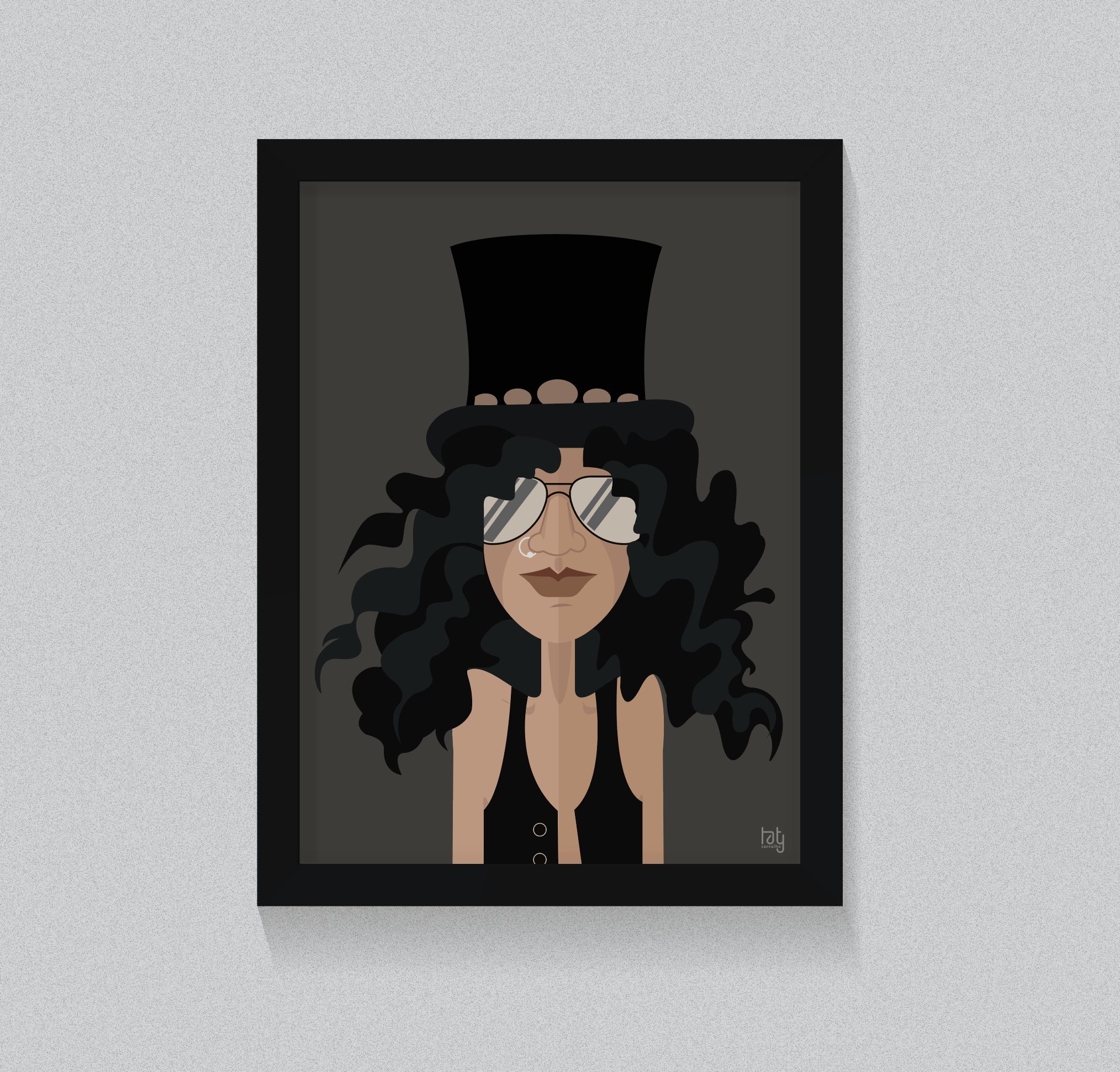 Esta peça foi inspirada em um dos guitarristas mais icônicos do rock: Slash. Ele ficou mundialmente conhecido como membro do Guns N’ Roses, principalmente nos anos 80 e 90.