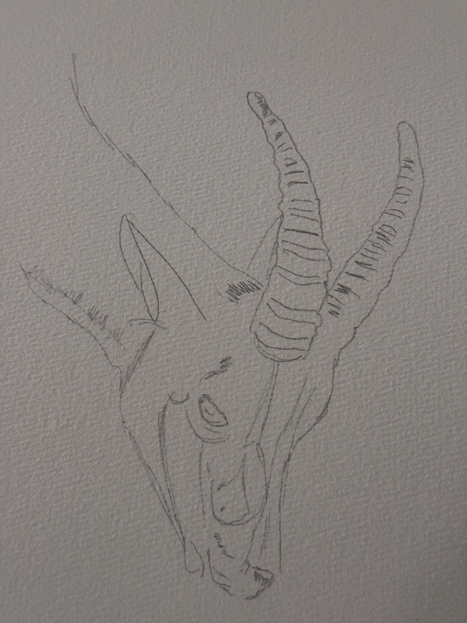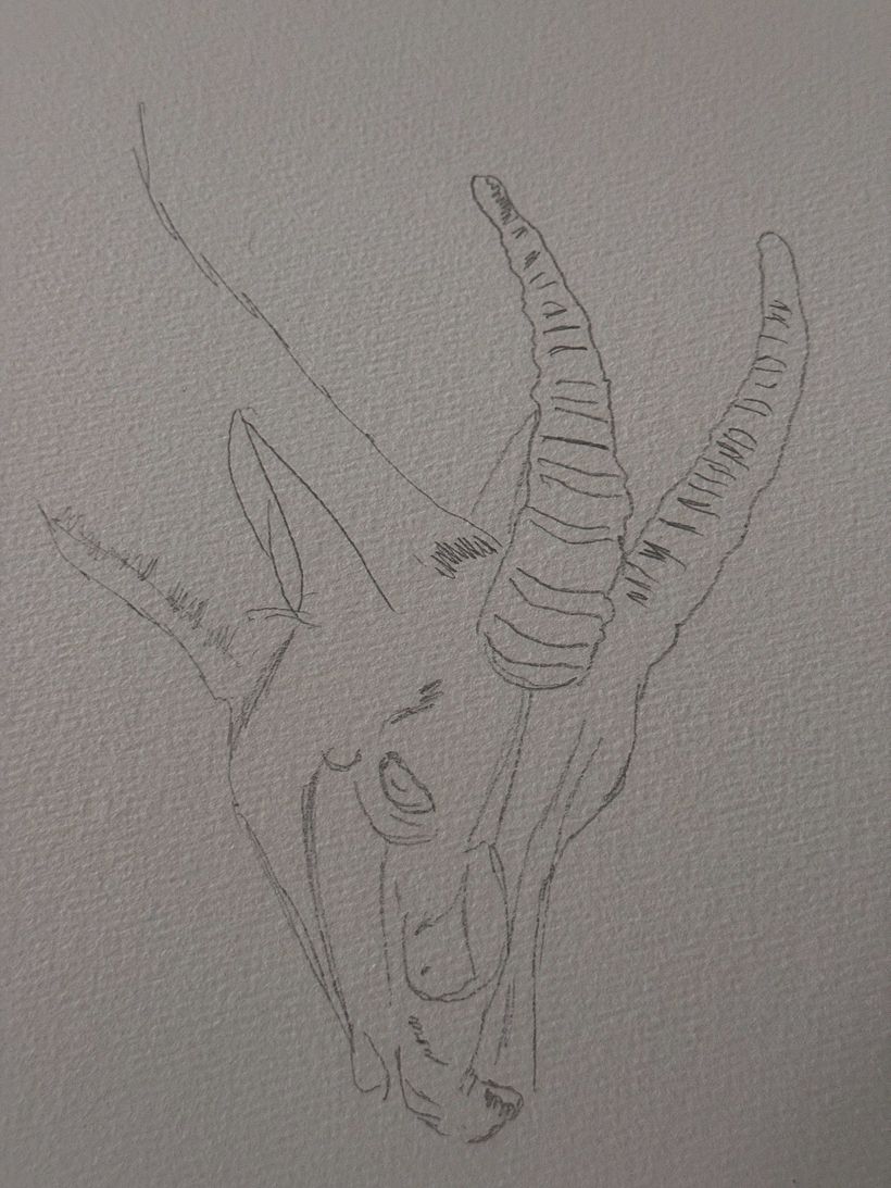 Ich setzte gezielt dunkle Akzente und ritzte mit einem scharfen Messer feine Linien in die Hörner, um ihre markante Struktur hervorzuheben.