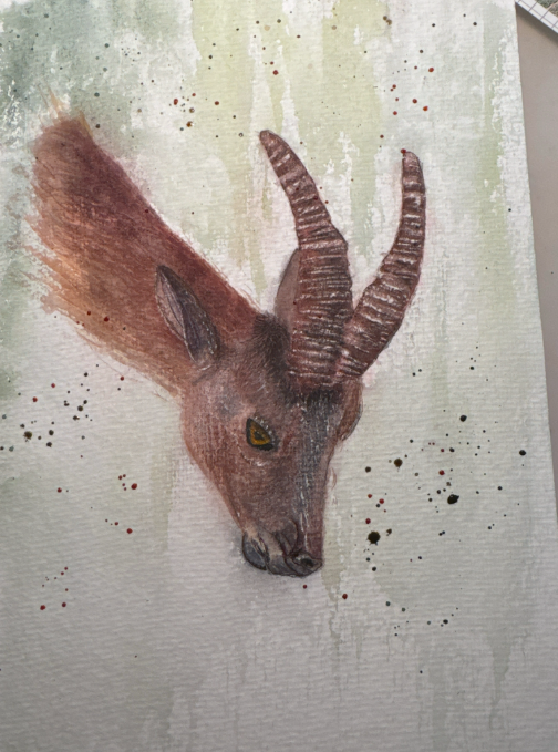 Für mein Abschlussprojekt habe ich einen Steinbock gemalt – inspiriert von einem Foto, das ich während einer Bergwanderung aufgenommen habe.
