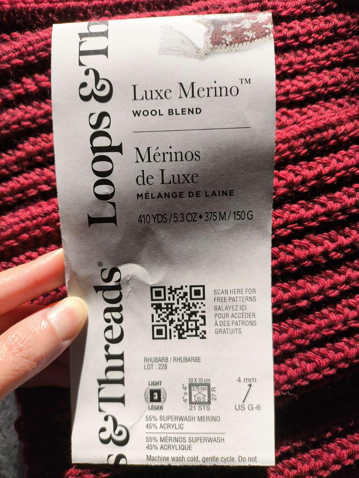For the yarn I used Loops & Threads Luxe Merino in the color Rhubarb and a 4.5mm hook.