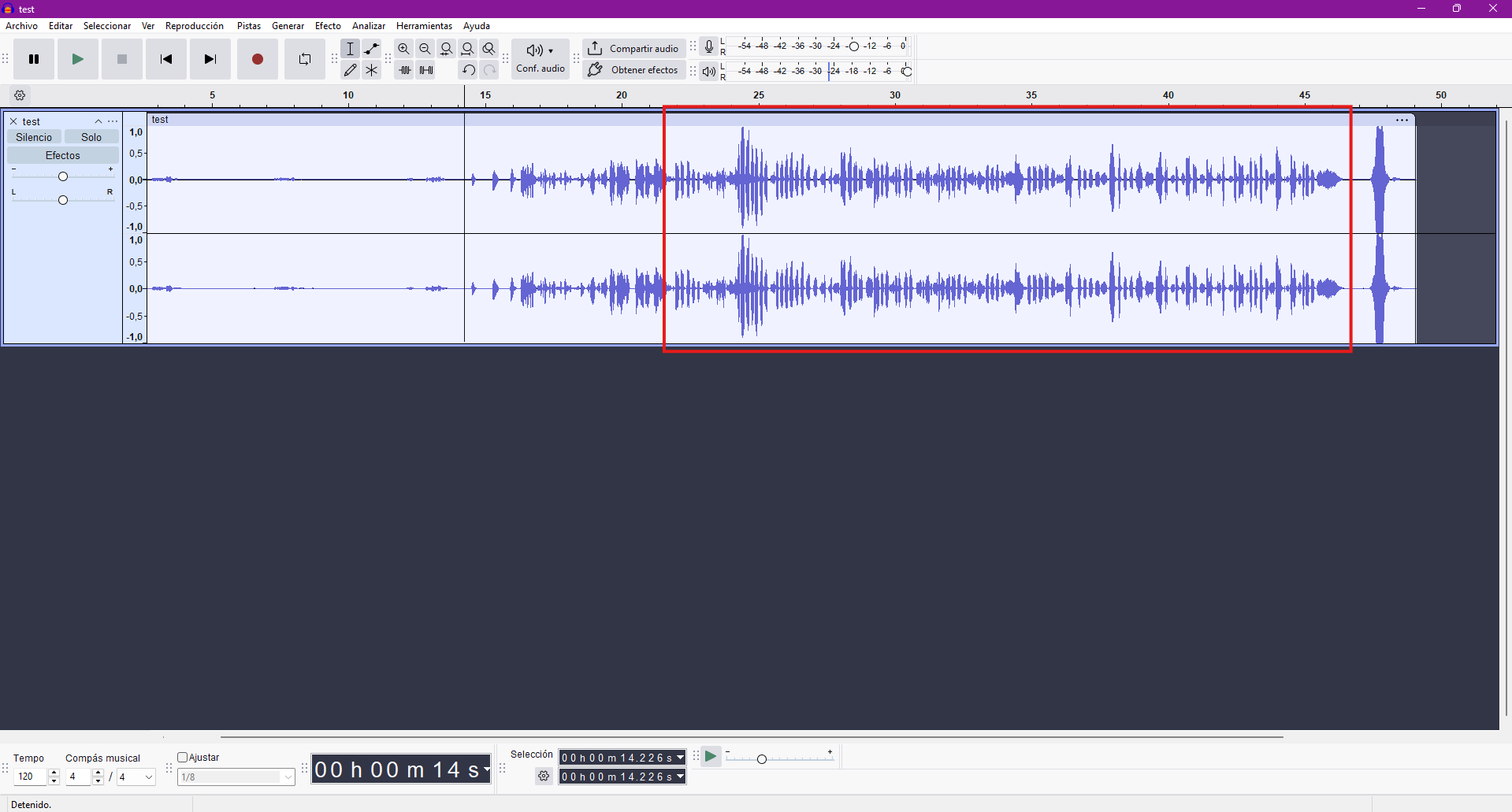 en la imagen del audacity todo lo que esta en el cuadro rojo soy yo riéndome/ ahogándome y riendo de verdad fue la prueba numero 6 esta entrando a un estado de locura que se paso a la siguiente linea de ese personaje.