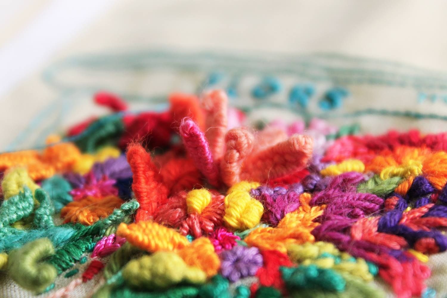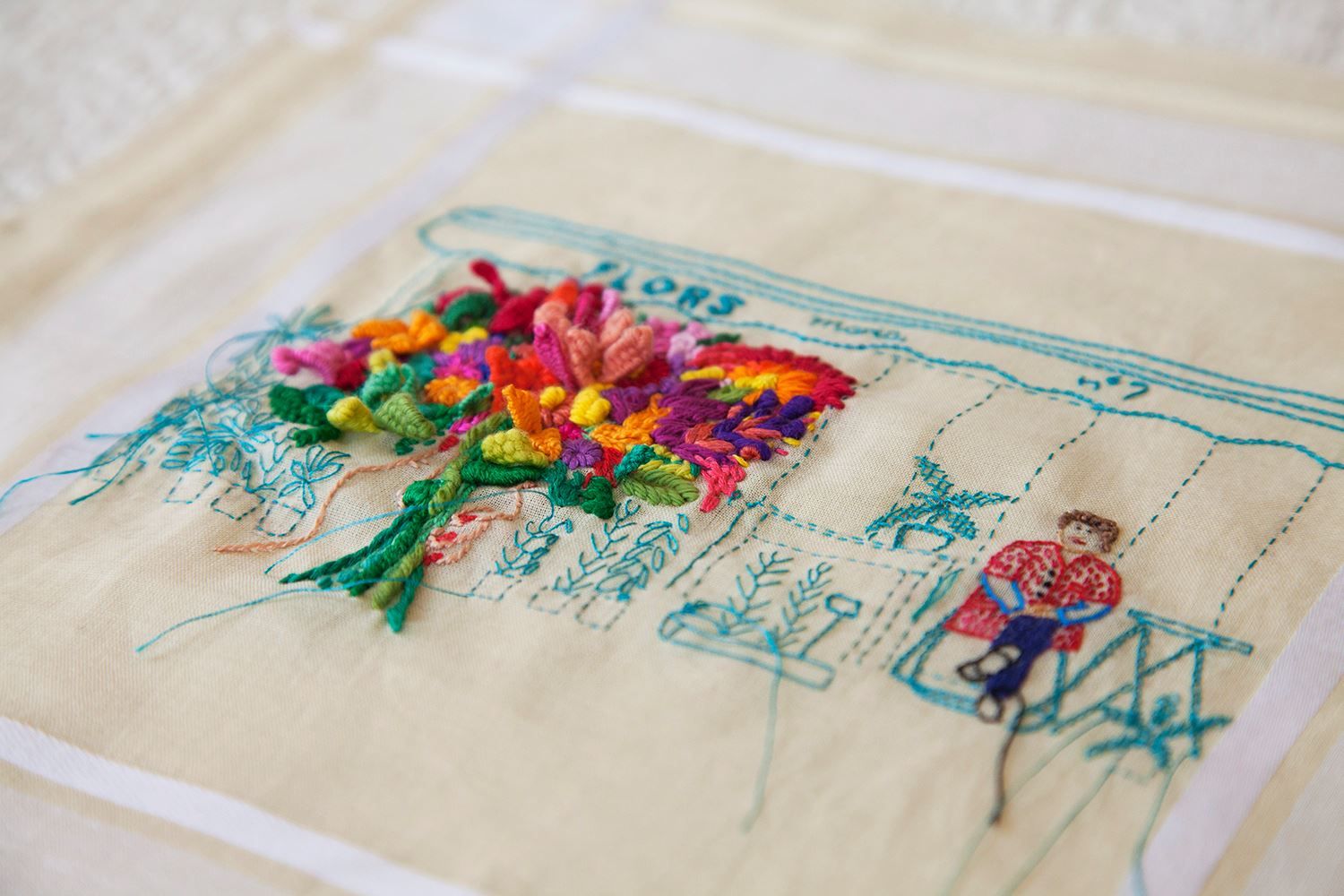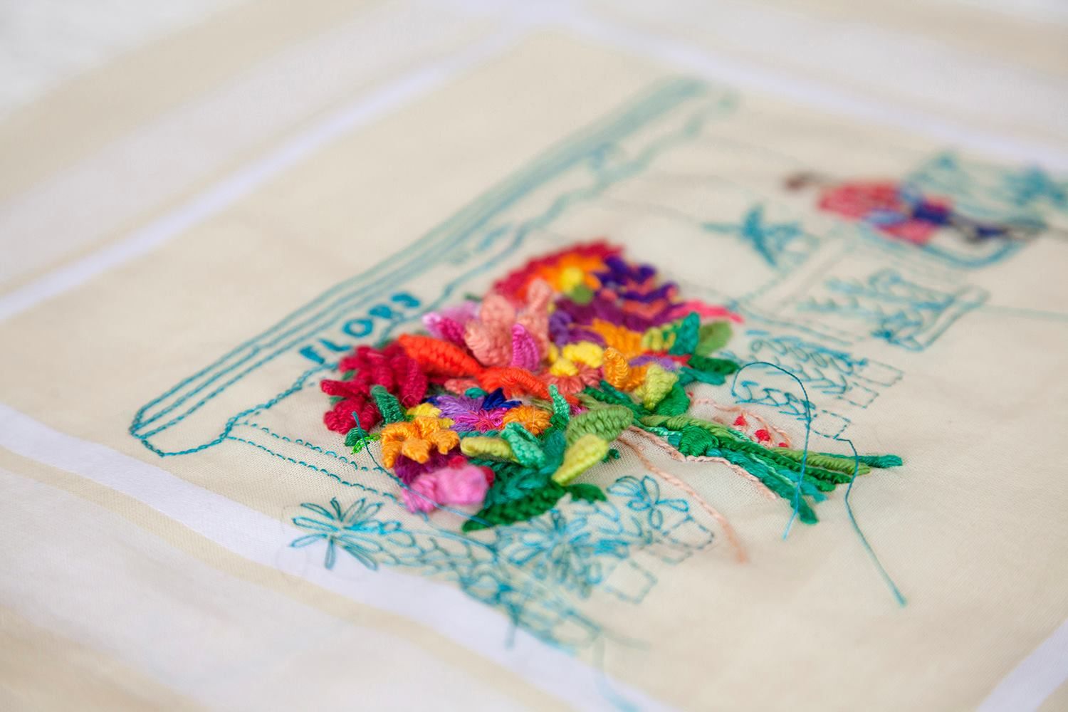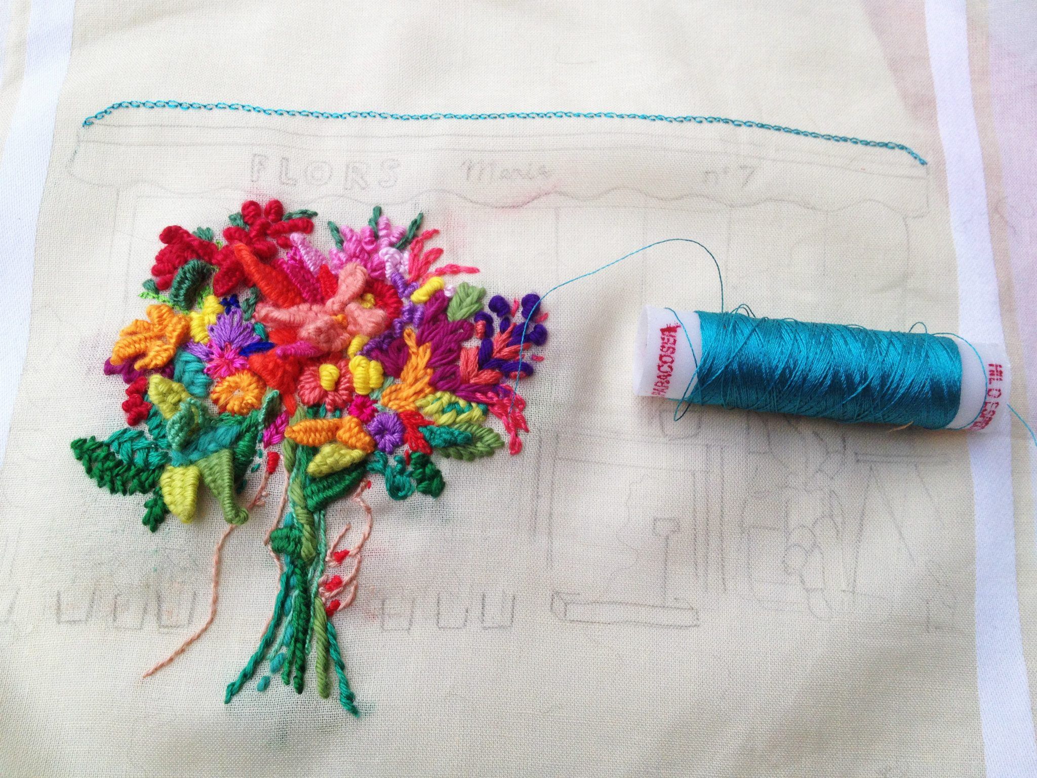 Uno de ellos es caminar por las Ramblas y comprarme un colorido ramo de flores para alegrar mi hogar… Es uno de mis placeres. Y al bordarlo hasta puedo sentir el perfume de las flores!