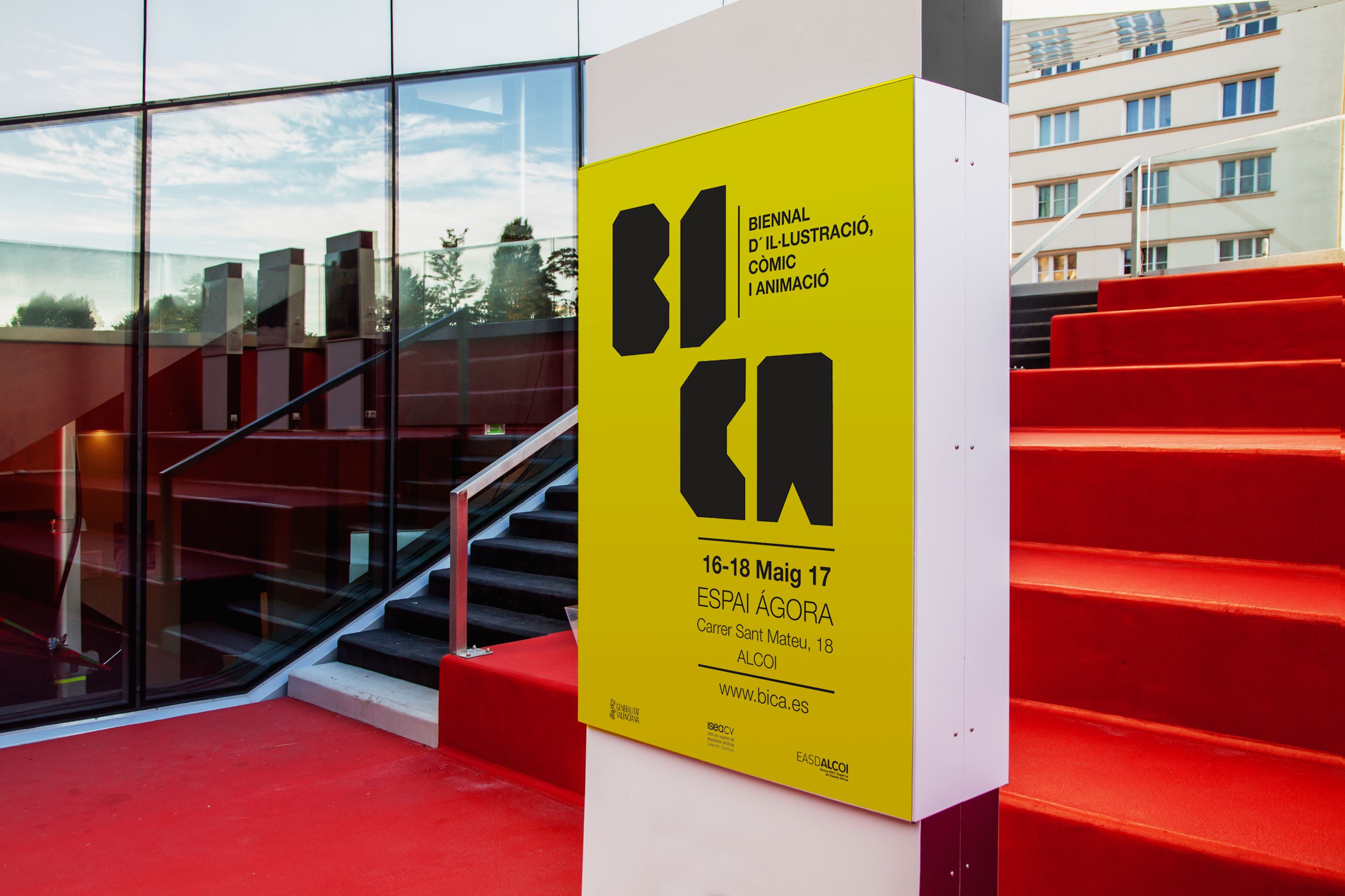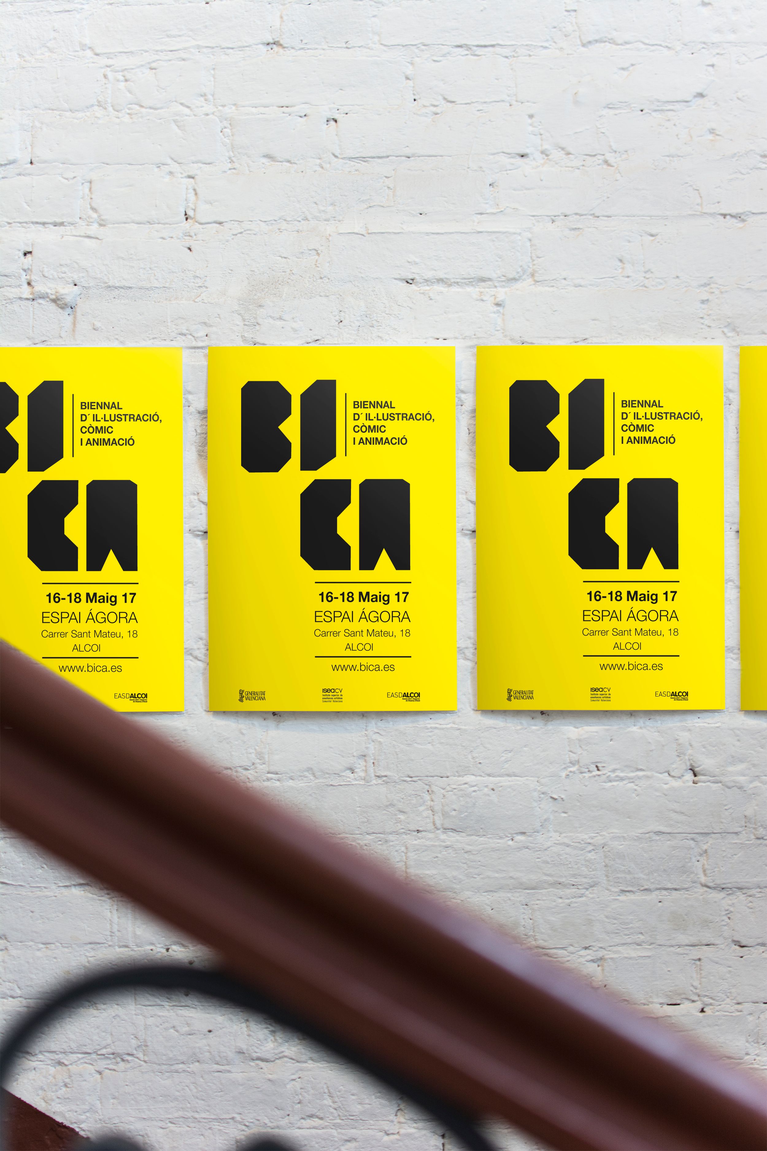 Diseño de la imagen corporativa de BICA (Bienal de ilustración, cómic y animación). Tipografía asimétrica basada en recortables.