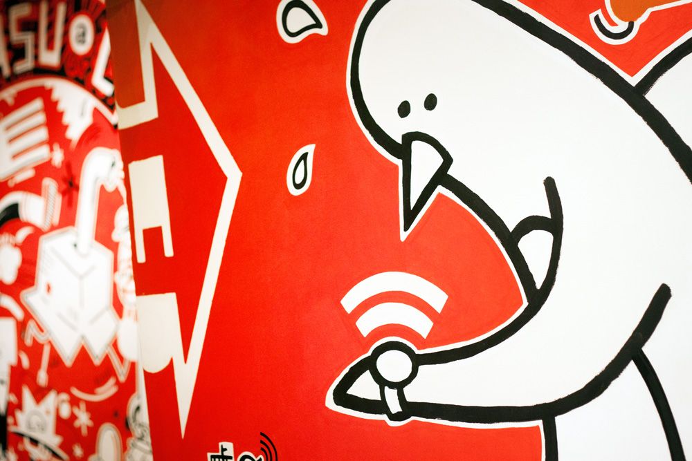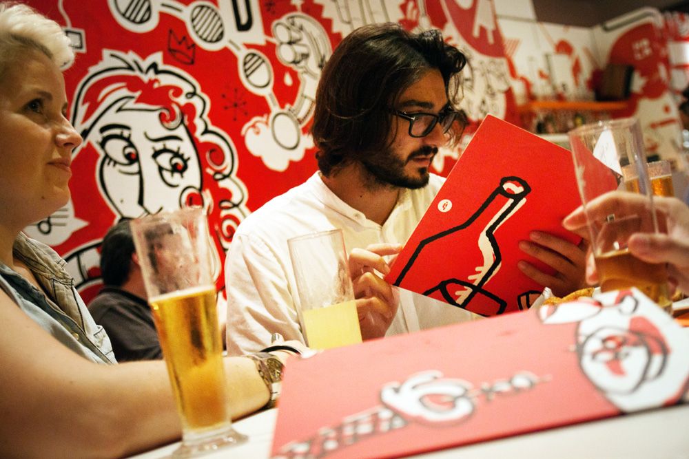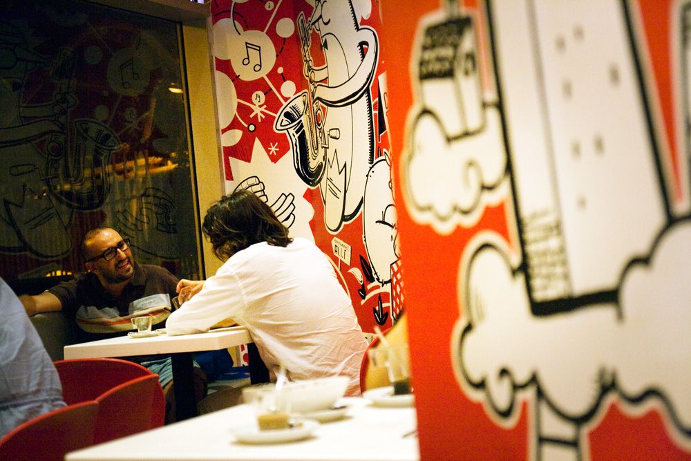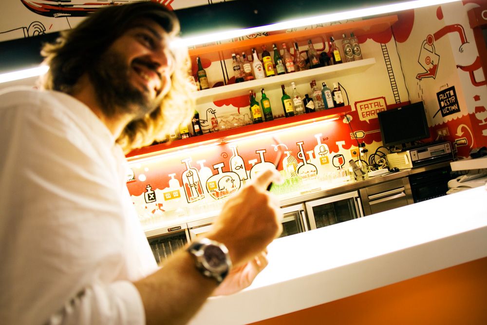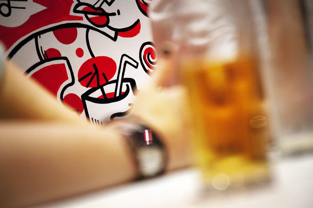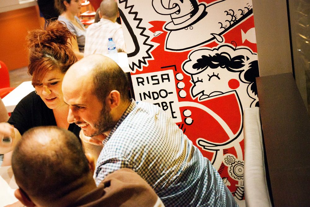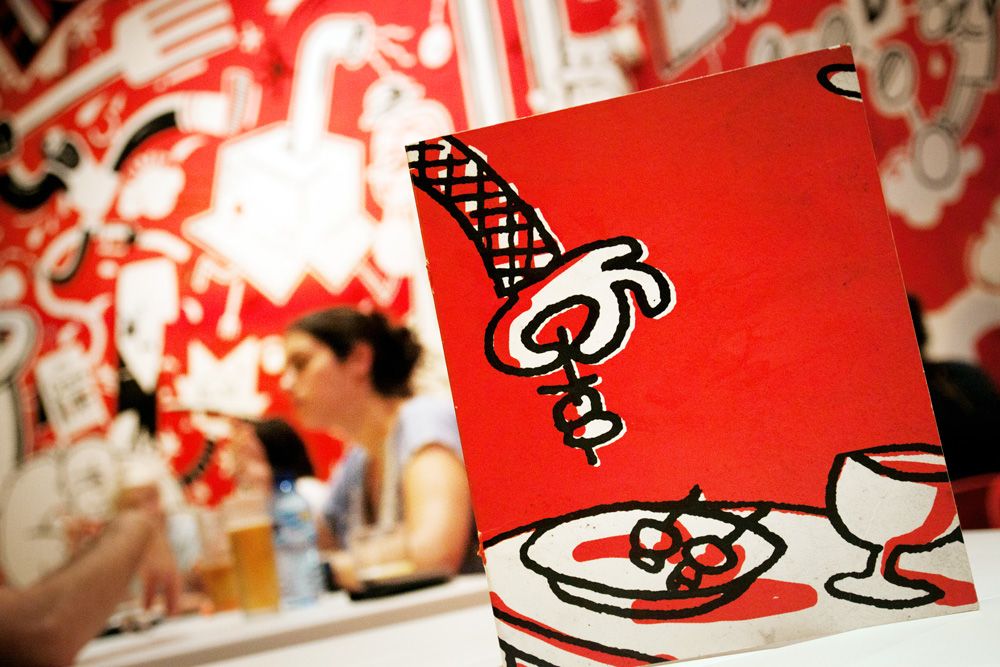 Mural de 120m2 pintado a mano en el bar-restaurante Icasual de Barcelona.