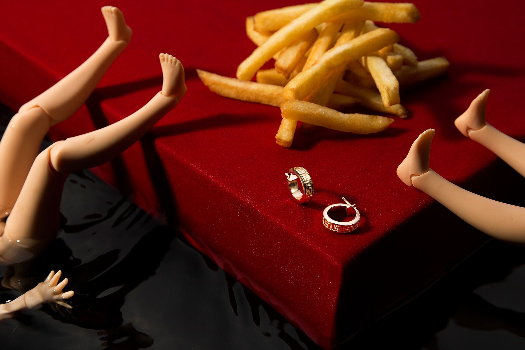 We worked the concept around the unhealthy food and the artificial beauty.