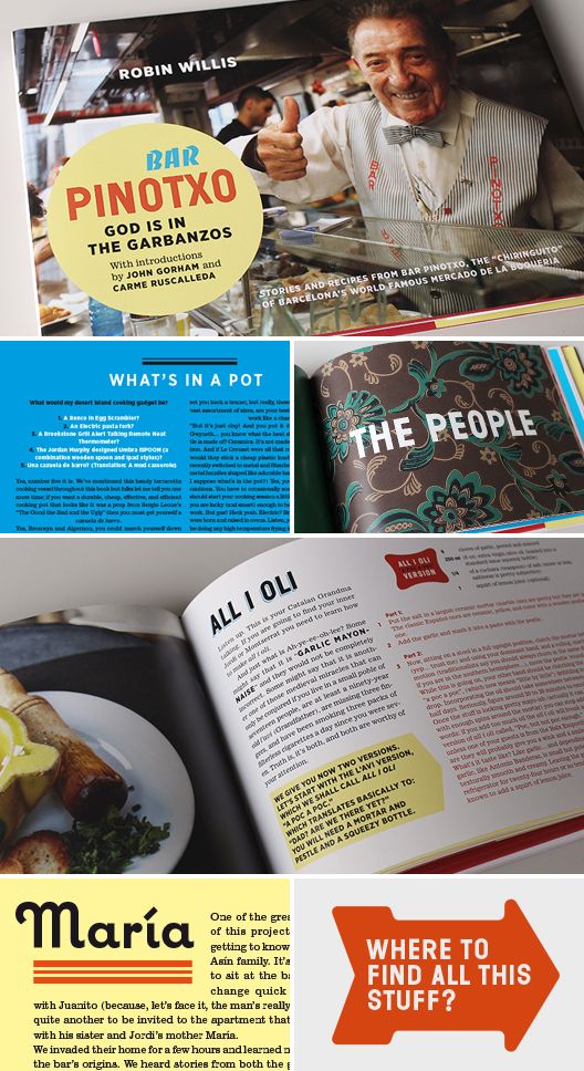 Con introducciones de John Gorham, propietario de la cadena de restaurantes norteamericana Toro Bravo y la cinco estrellas Michelin Carme Ruscalleda, escrito por Robin Willis, “Bar Pinotxo: God is in the Garbanzos” (“Bar Pinotxo: Dios está en los garbanzos”) es una celebración alegre y conmovedora de la historia, vivencias y recetas del bar de 17 taburetes del Mercado de la Boqueria de Barcelona. Con fotografías de Becky Lawton.