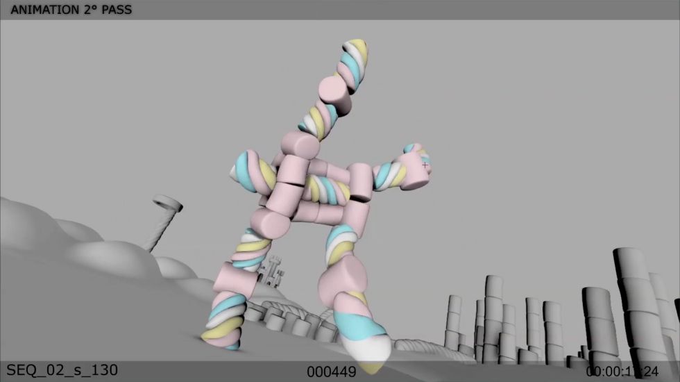 Para estos dos comerciales de Mogul (Marshmallows y Extreme) realizamos captura de movimiento sobre un bailarín para luego generar el realismo en la danza de los personajes 3D hechos del producto.