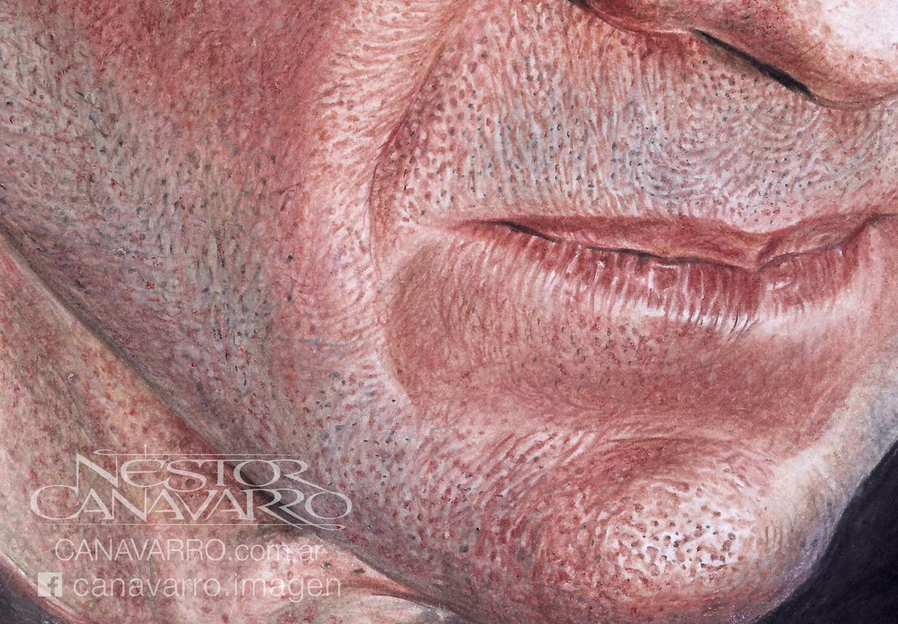 Por otro lado, la suavidad superficial que presenta el papel ilustración, permite el tratmiento minúsculo de los detalles y habilita el uso, siempre cuidadoso, del cuchillo de artista para generar brillos pequeños para modelar la textura de la piel y obtener cabellos claros.
