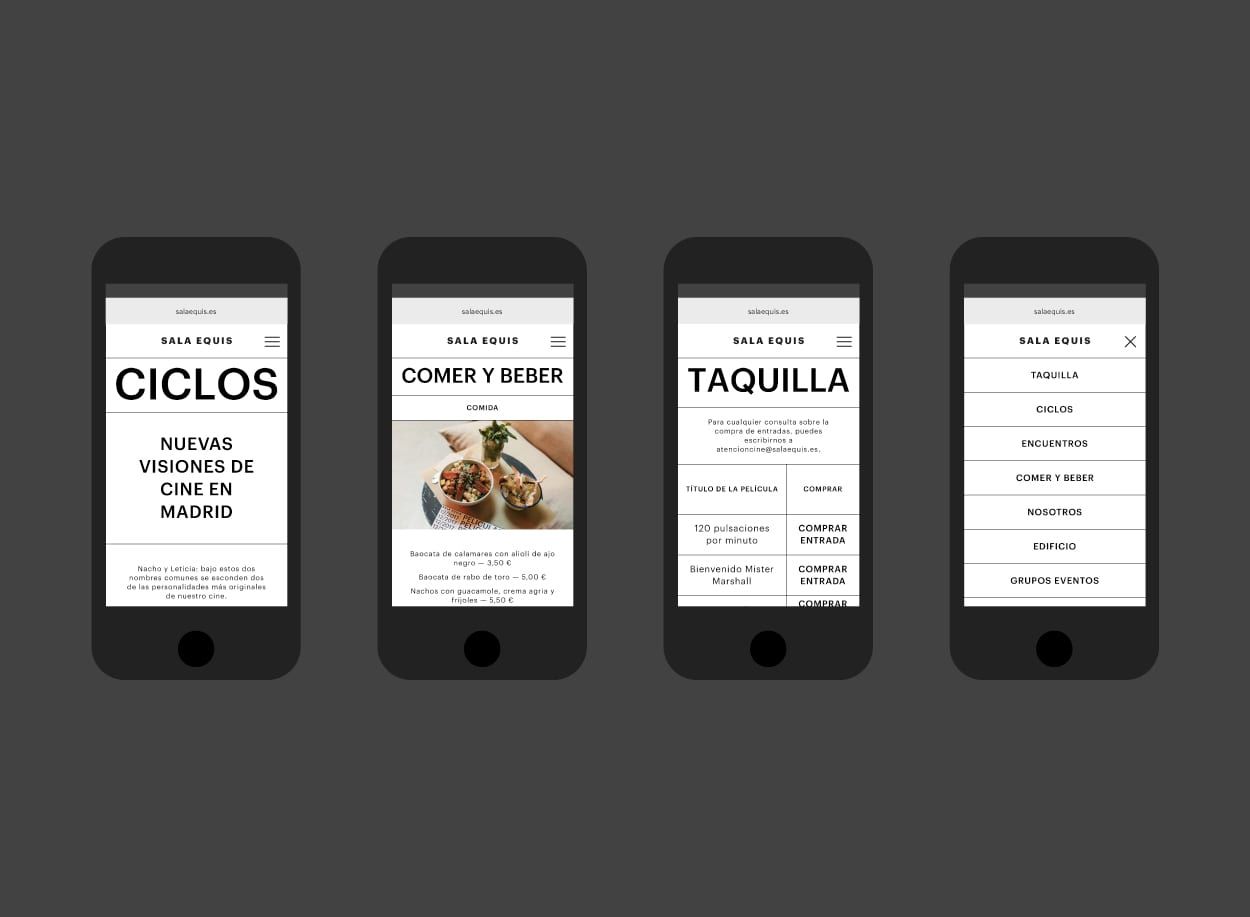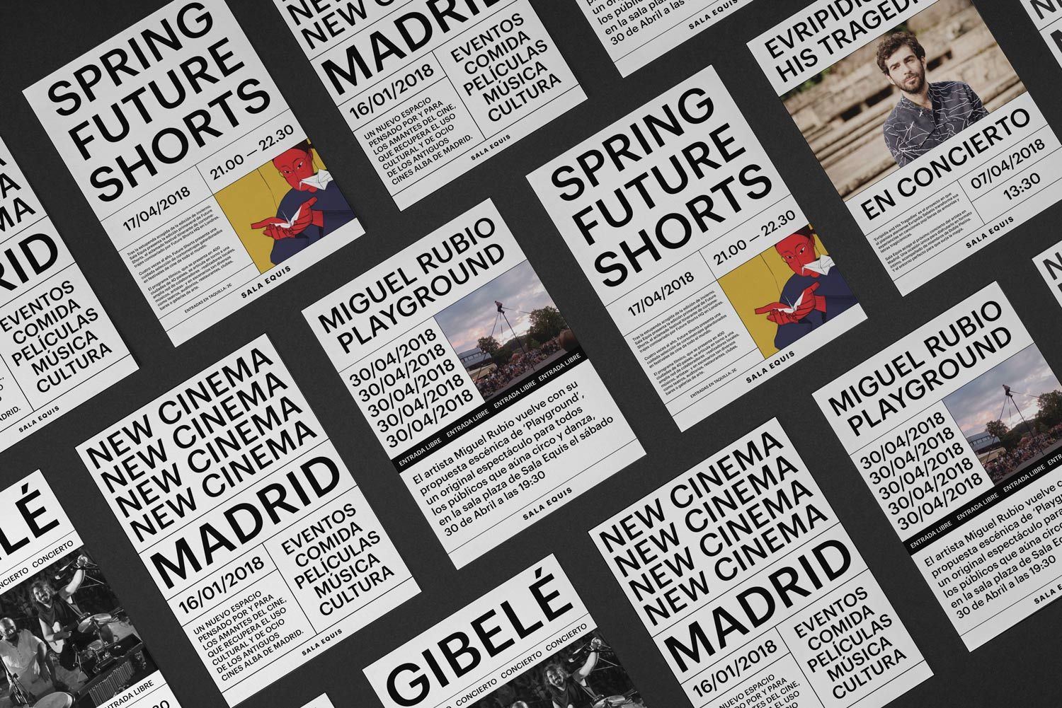 I was approached by Sala Equis to help them build a new brand identity as well as a website, visual communication, packaging and signage. Having old cinema billboard advertising and light boxes as a reference, I developed a playful and flexible system.