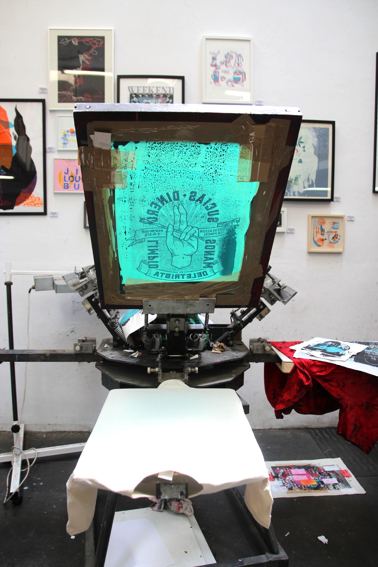 Ja, in unserem Portfolio zeigen wir Ihnen die Arbeit, die wir in unserer Werkstatt leisten. Wo wir mit fotografischem Siebdruck arbeiten, der manuelles Drucken bis ins kleinste Detail und absolut professionelle Ausgaben ermöglicht. Wenn Sie bemerken, hat unser Kurs bei Domestika nichts mit den Präsenzkursen zu tun, die wir in unserem Raum durchführen.