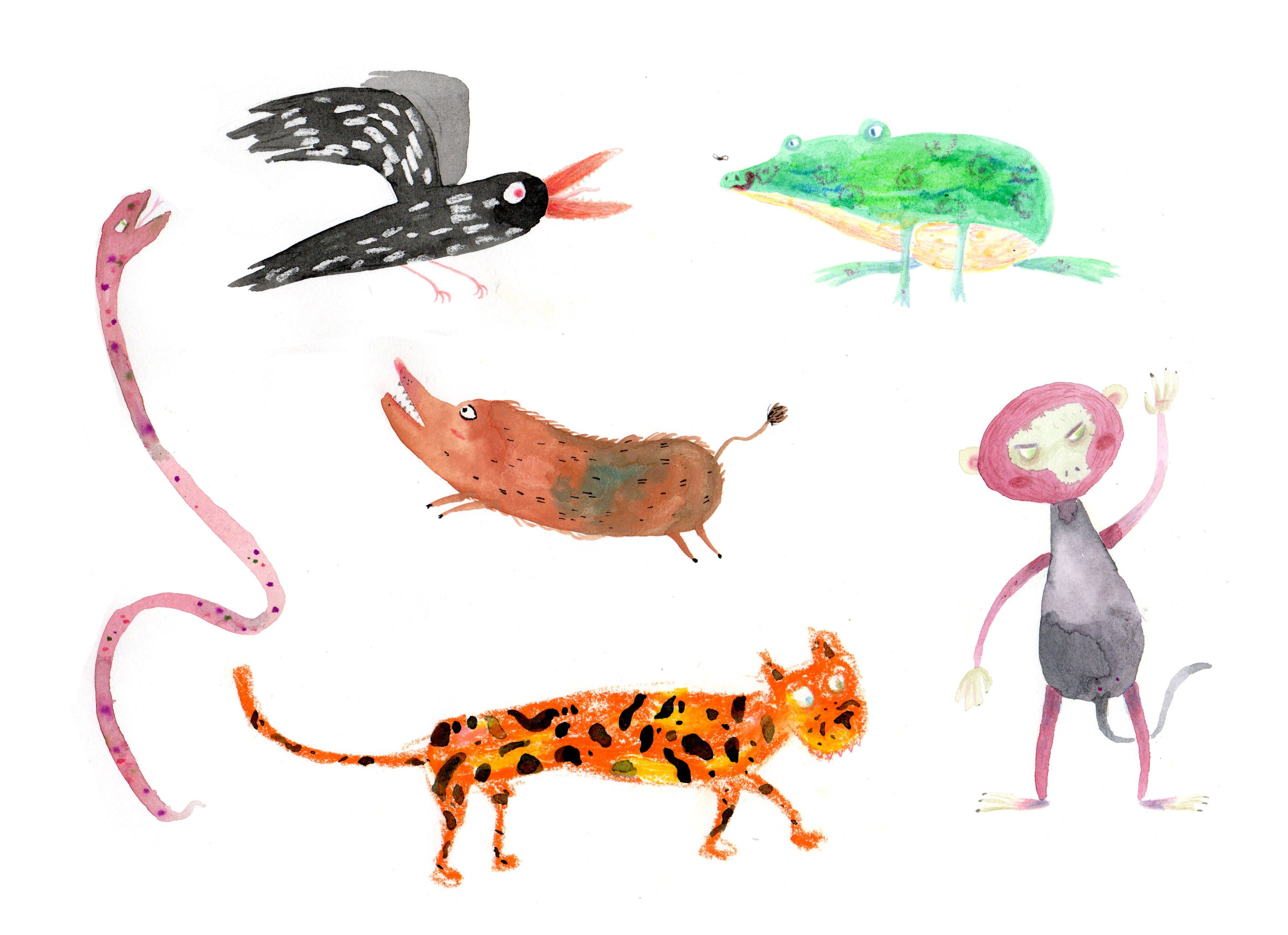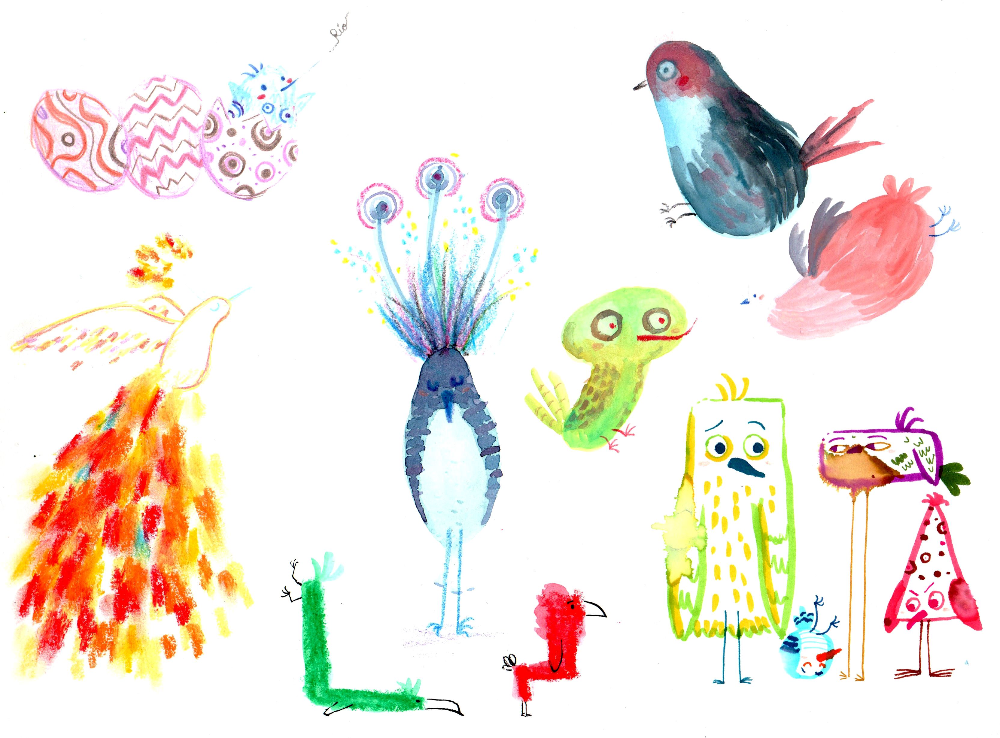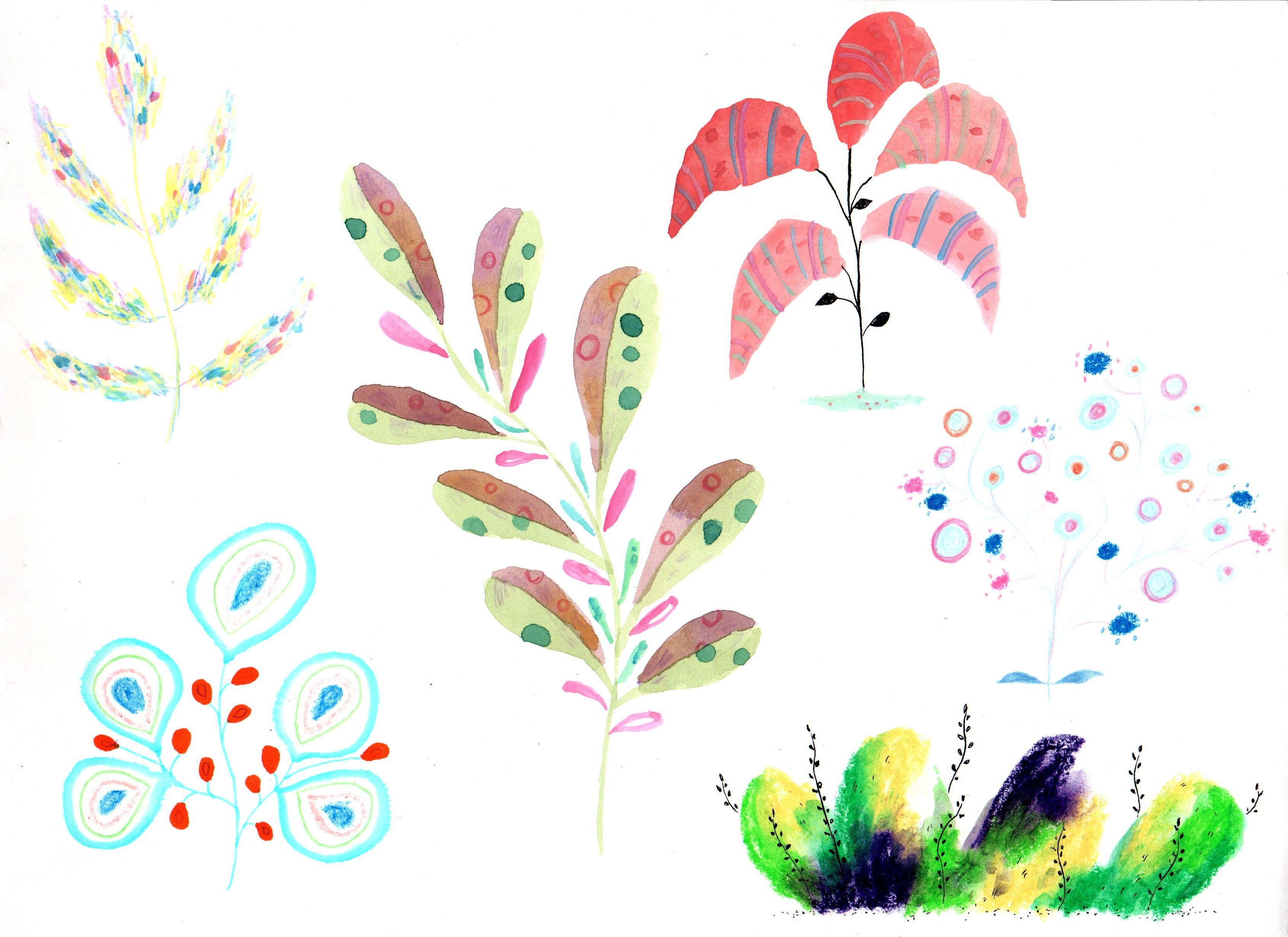Ich habe mit Wasserfarben, Gouache, Tinte, Buntstiften, Graphit, Gelato, Aquarellstiften, Markern, Wachsmalstiften, Druckgrafik usw. experimentiert.