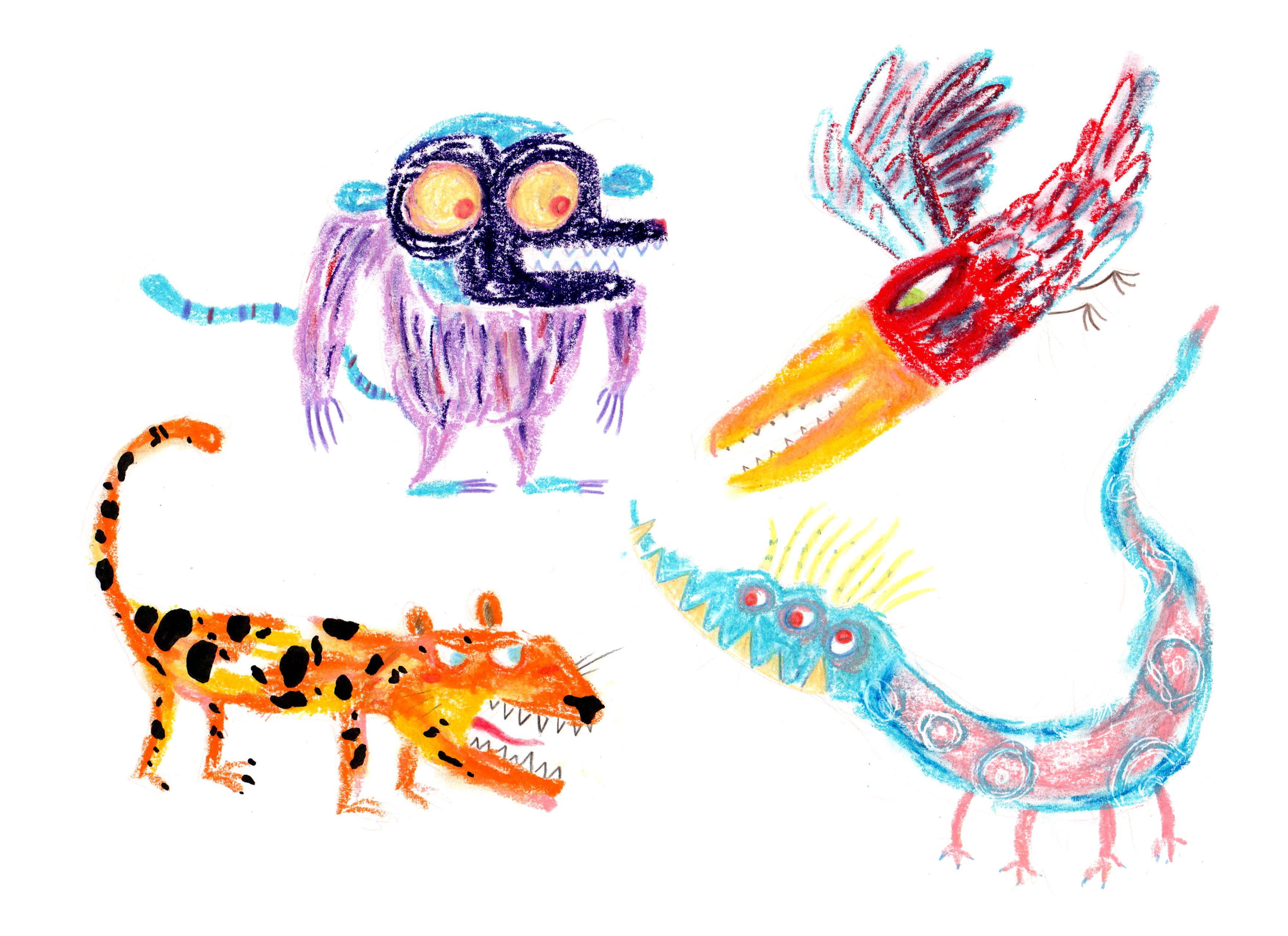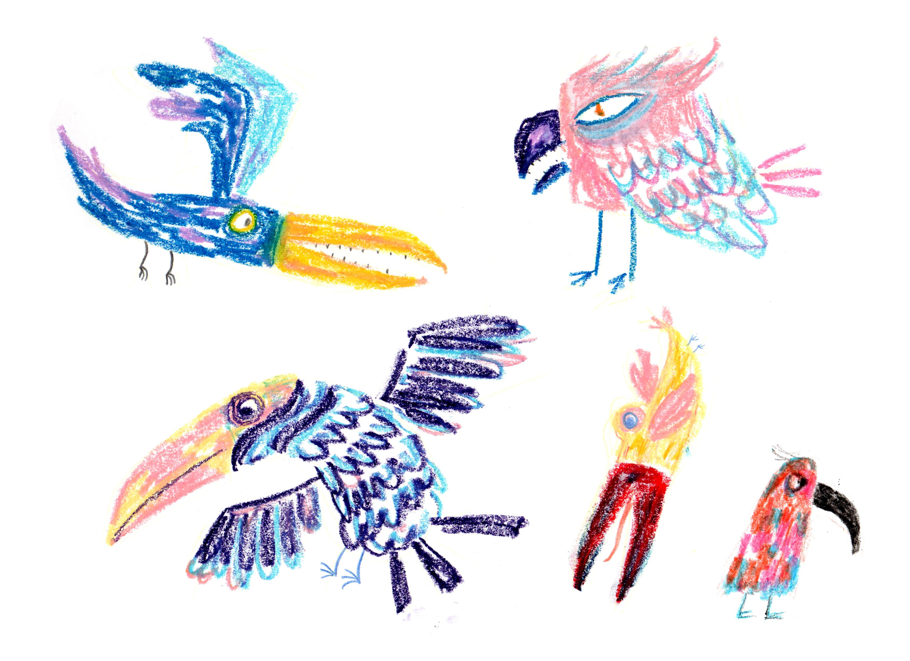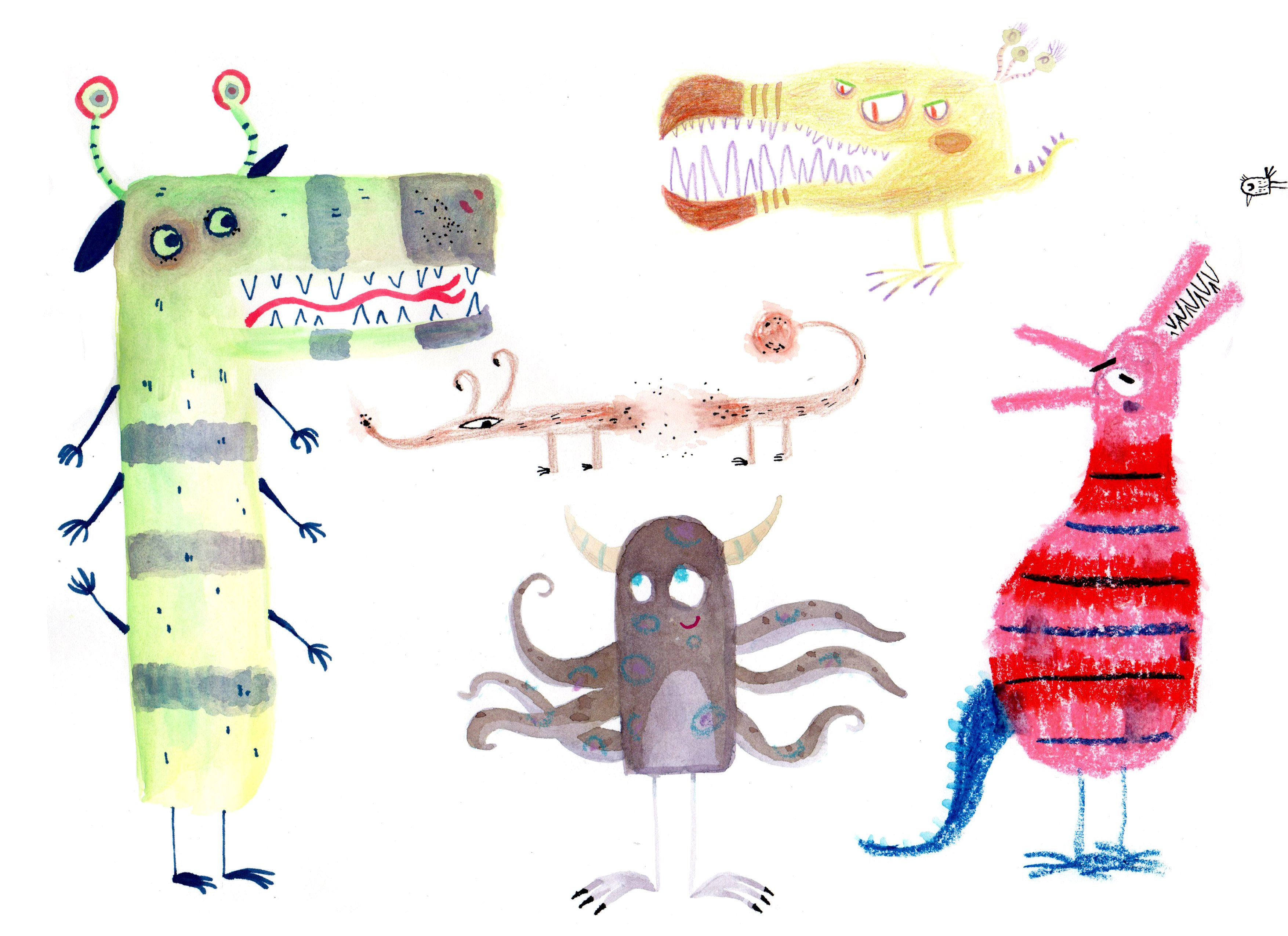 Ich habe mit Wasserfarben, Gouache, Tinte, Buntstiften, Graphit, Gelato, Aquarellstiften, Markern, Wachsmalstiften, Druckgrafik usw. experimentiert.