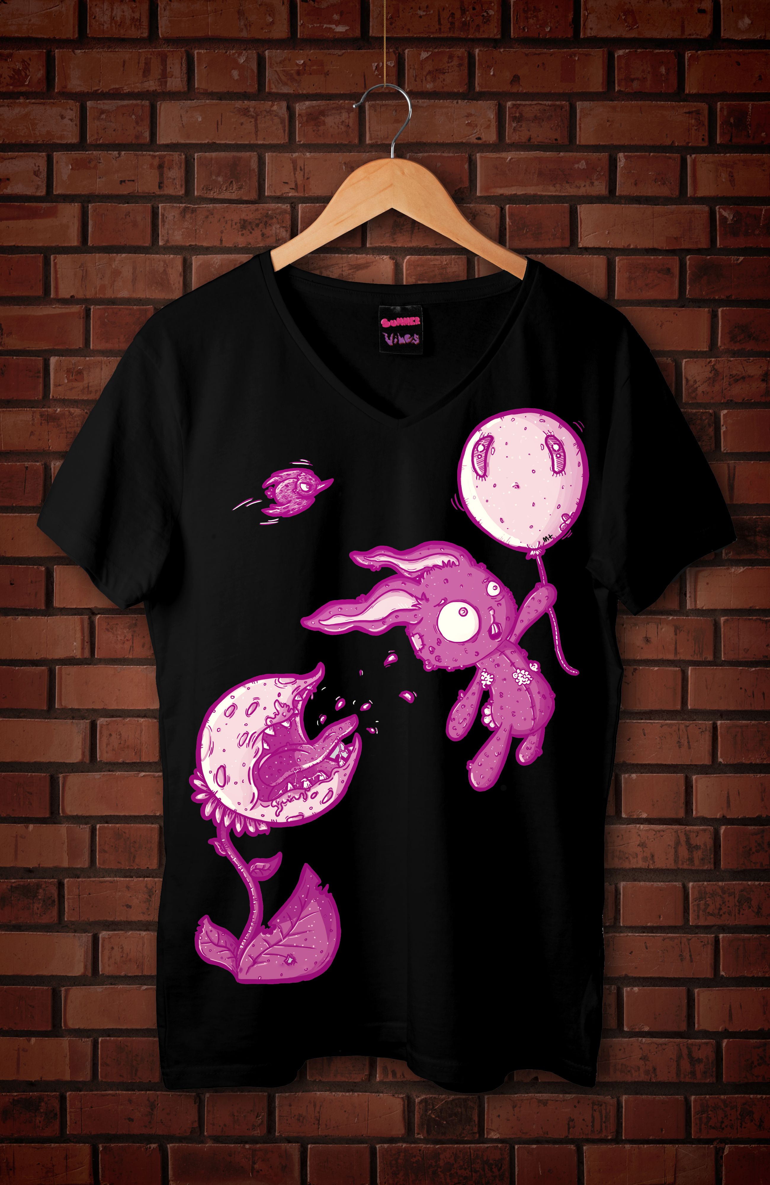 Ihre Illustration hat uns sehr gut gefallen, unser Lieblingscharakter ist das Kaninchen und die fleischfressende Pflanze, die Komposition hat sehr interessante Details und alle Texturen und Linien tragen viel zu den Charakteren bei.