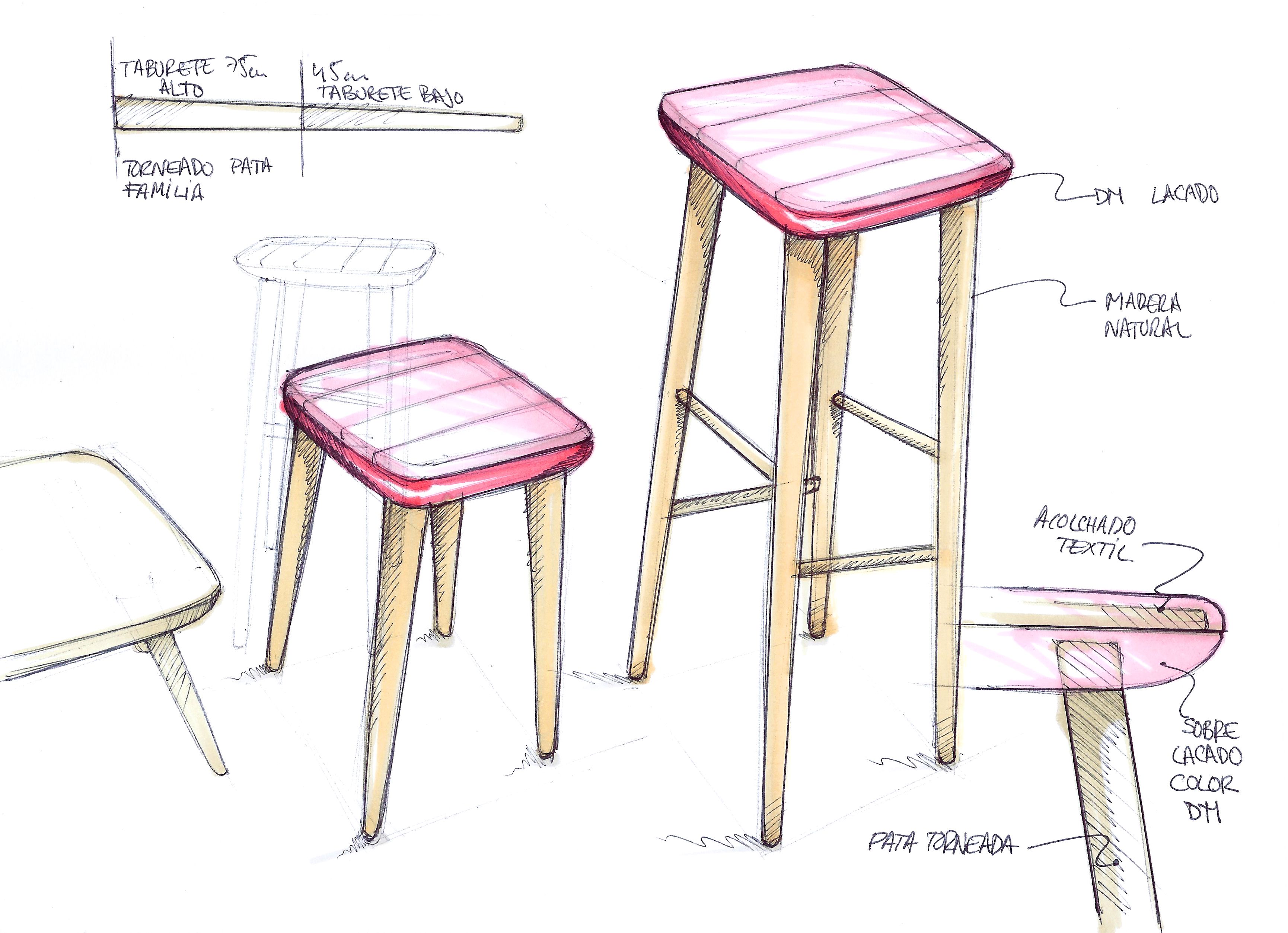 Serie de taburetes diseñados para la colección