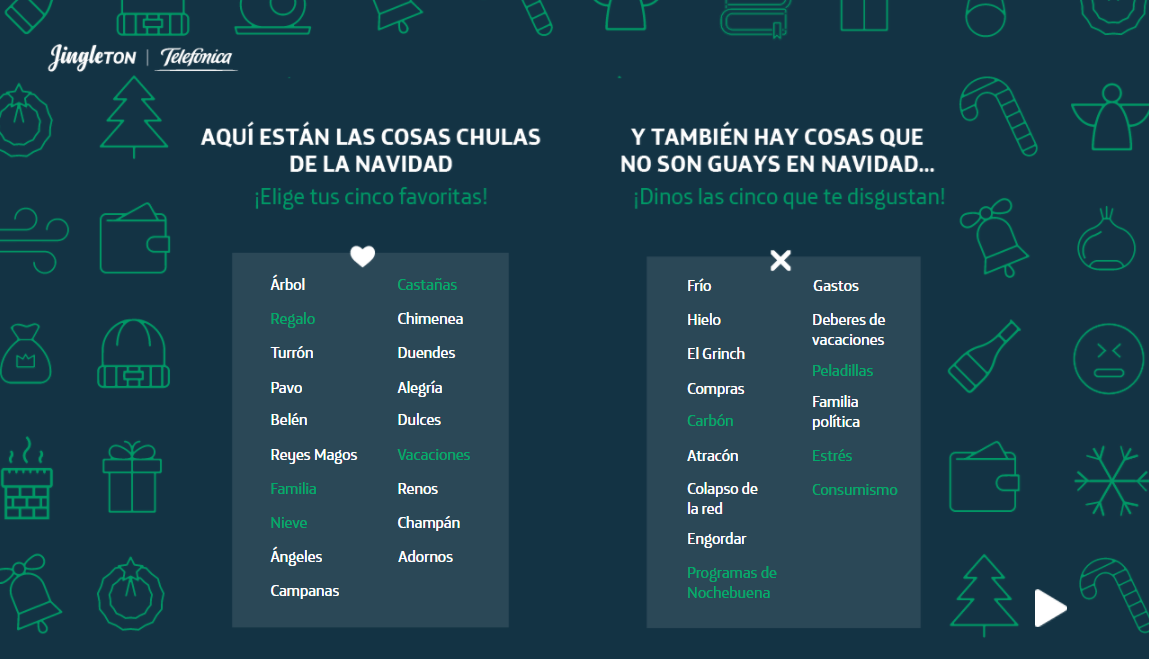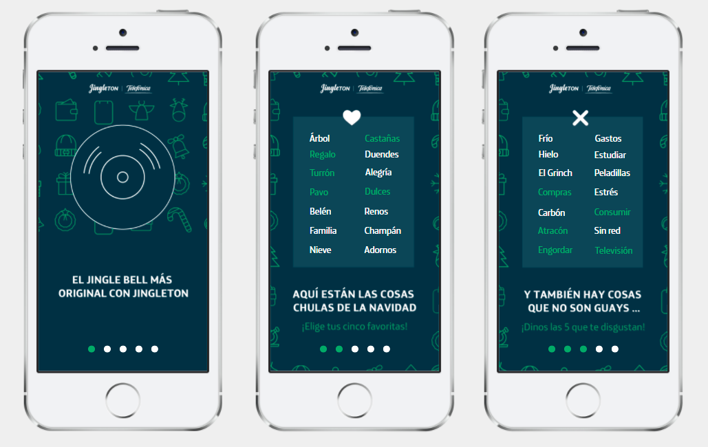 Prototipo de aplicación para felicitar las fiestas de Navidad. Realizado bajo el concepto de campaña de Telefónica, Elige Todo.