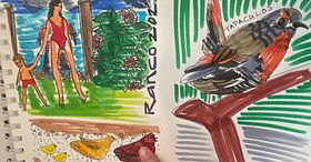 Zeichne einen imaginären Ort, indem du analoge Werkzeuge wie Aquarellfarben, Stifte und ein Skizzenbuch mit Photoshop kombinierst, um lebendige Texturen hinzuzufügen