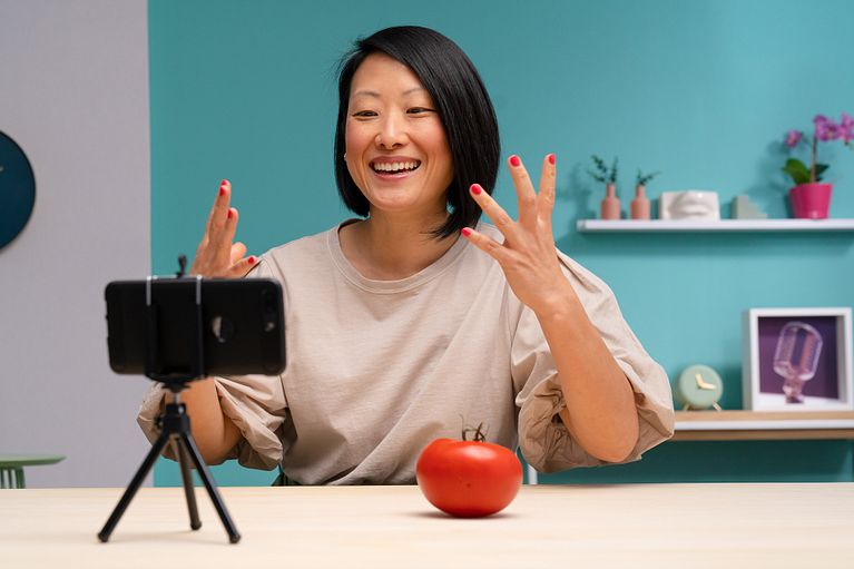 When you watch it back, she emphasizes the importance of being kind to yourself. She asks you to focus on the positives and ask: what do you see, what do you hear, and what do you feel? Next, identify one thing (and only one!) you'd like to improve when you create your next video.