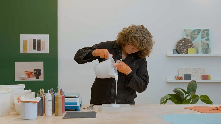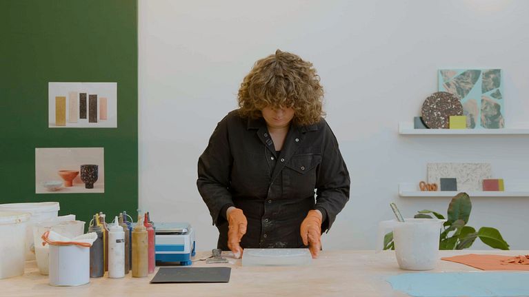Surface and product designer Olivia Aspinall (@oliviaaspinall) specializes in creating terrazzo furniture and accessories from her studio in Nottingham, England. In this free tutorial, she takes you through the steps to chip and cast your way to your very own terrazzo collection!