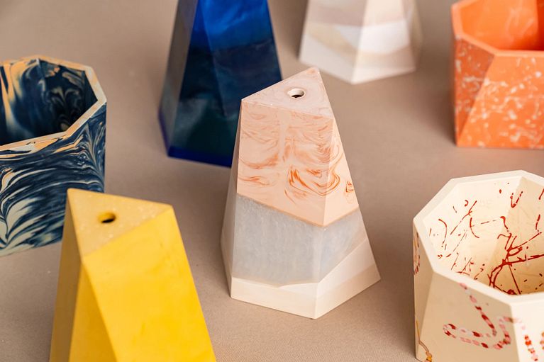 Textures and Finishes: Eco-resins can be manipulated to achieve various textures and finishes, such as glossy, matte, or marbled effects. By layering or blending different eco-resins, designers can create rich, complex textures that add depth and character to their objects.