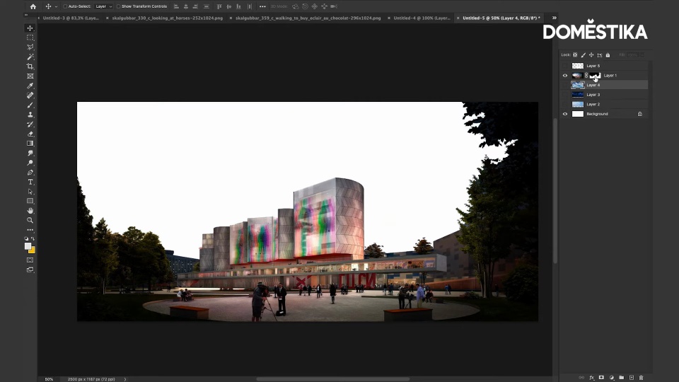 When adding extra elements to your composition, such as the sky, take care that they do not overload the image or steal the attention from the central point, which, as we have already said, will always be the architecture. Always look for sober images in which you can work on details, and not loaded images that later will be difficult to subtract intensity.