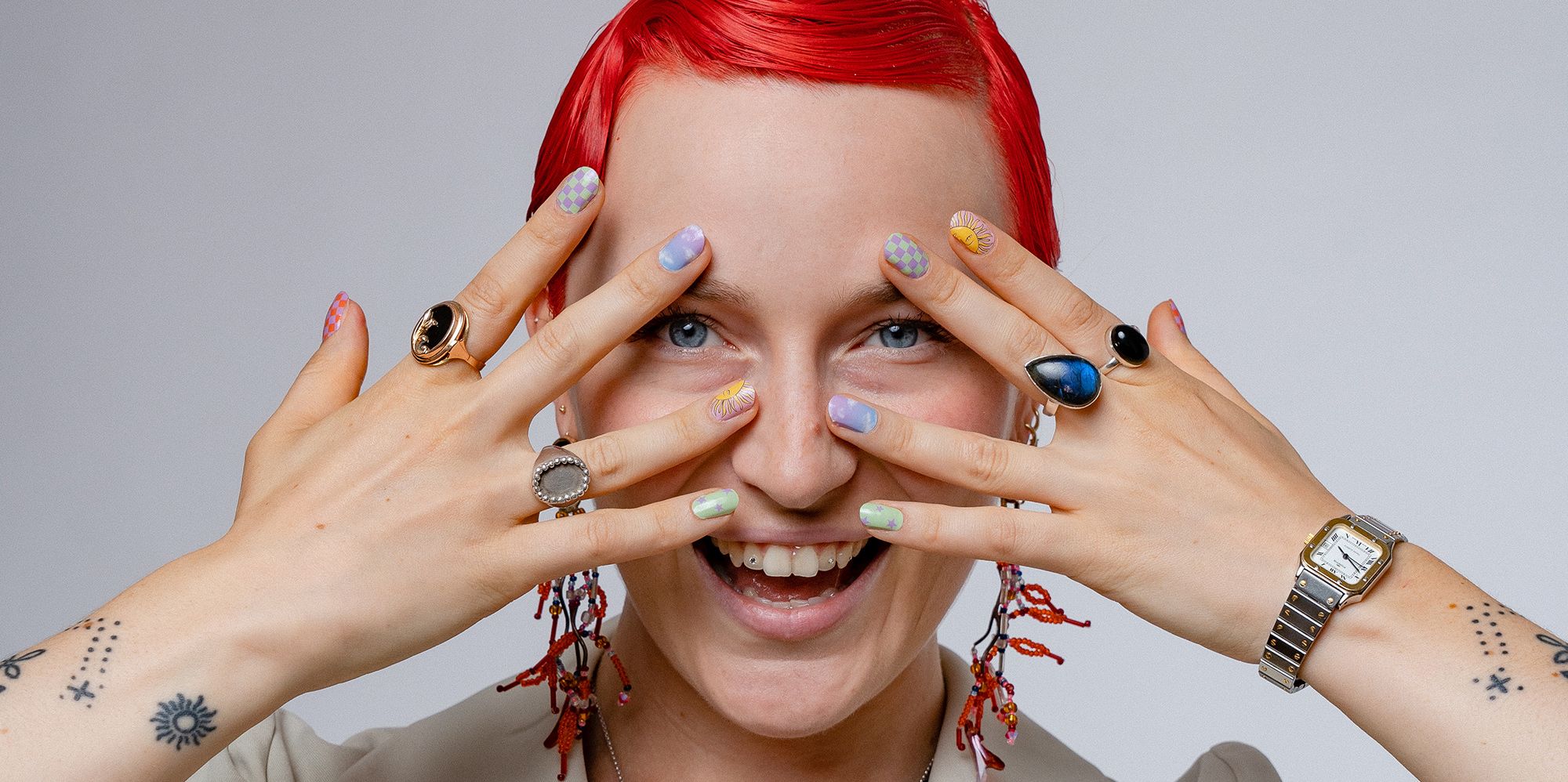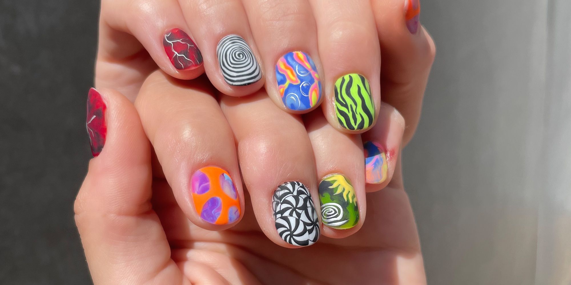 Nail art is an artistic way of expression that utilizes miniature “canvases” to achieve striking images... But I would recommend not using your beautiful nails to “strike” anyone physically tough...