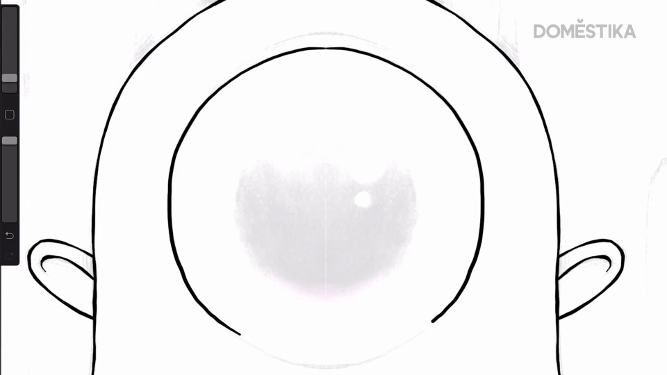 To make the inking faster, activate the asymmetry mode. Thus, when you make a stroke on, for example, the head of a character, it will be reproduced on the other side of the drawing, as if it were a mirror. The recommended brush size is medium.