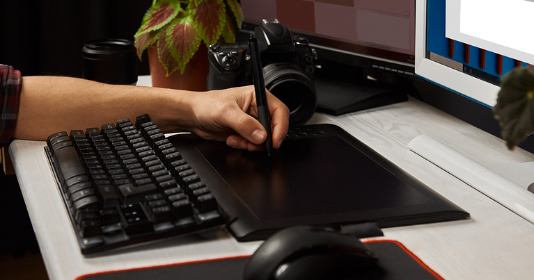 Graphic tablets with side buttons: shortcuts are often on the left side, with the non-dominant hand in mind for right-handers.