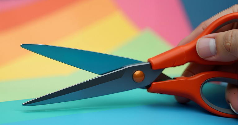 Standard scissors: the blades are aligned for right-handers, making it difficult to cut with the left because the blade hides the cutting line.