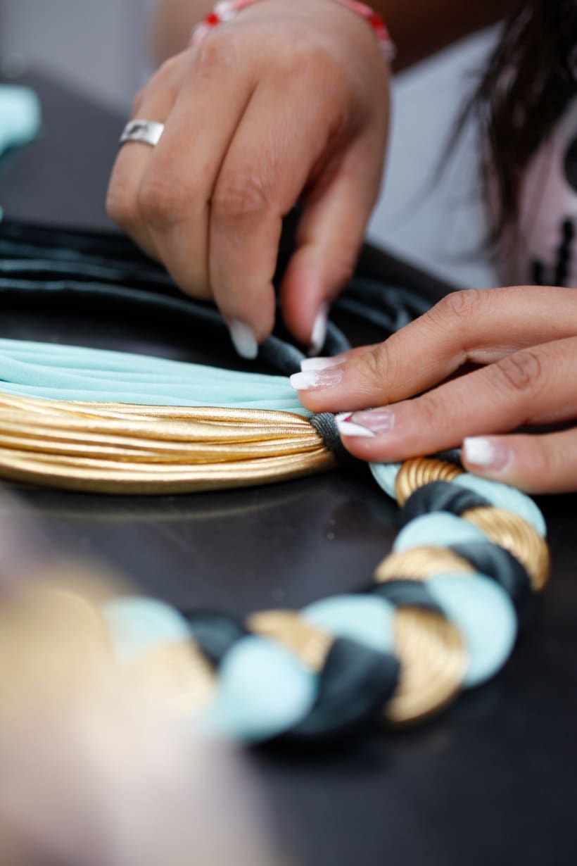 For María, it’s important to emphasize that “the brand image we want to communicate and build is part of the project”. Her textile jewelry brand sets out to create decent jobs in vulnerable communities, condemn the use of cheap labour, and produce well-designed products.