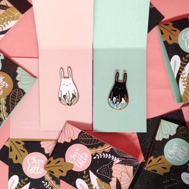 Her pins stand out among her creations. Here Charlötte walks us through her process for transforming her beautiful drawings into pins.