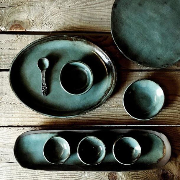 From her studio in the Spanish island of Ibiza, Carola Barroch makes handcrafted pieces inspired by the sea, and the spirit of her surroundings. She gravitates towards ceramics made with black clay and use them to play with enamels and colors, especially blue and green tones.