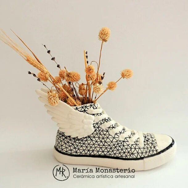 If María Monasterio's work stands out for something, it is for the diversity of materials and styles that can be found in her catalog: from hands that hold all kinds of fauna and flora, to classic tableware pieces or vases shaped like shoes. Geometry, flowers and animals are fixed elements of her pottery.