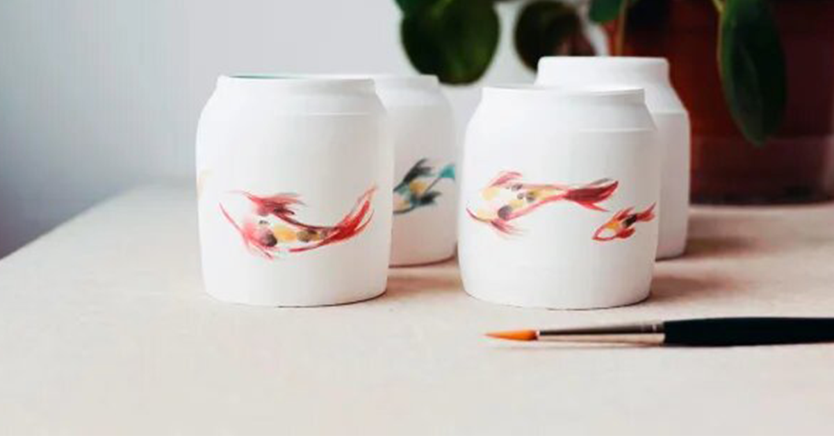 Under the name of Hello Made, Amber Feng creates delicate pieces of tableware, many of them finished with drawings of colored fish made as if they were watercolors, that could awaken and inspire anyone's imagination.