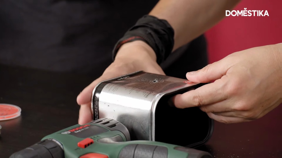 Fotolateras share how to make a pinhole camera with simple materials: a metal box, black paint, black adhesive tape, aluminum adhesive tape, and a drill.