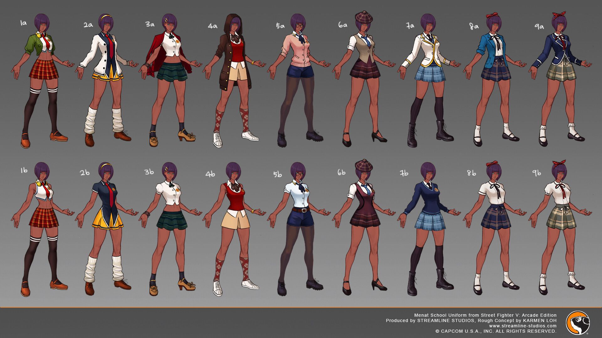 Whilst working at Streamline Studios, Loh created various character costume designs for Street Fighter V: Arcade Edition. Here are some examples of Loh’s work, for which she carried out the rough and refined concept. You will notice a departure from her usual style, instead, creating looks that bring new life to a well-known franchise.