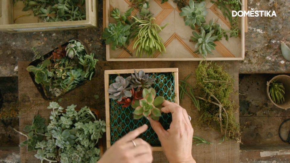 For other textures or combinations, we can, besides using succulents, cover part of our painting with moss.