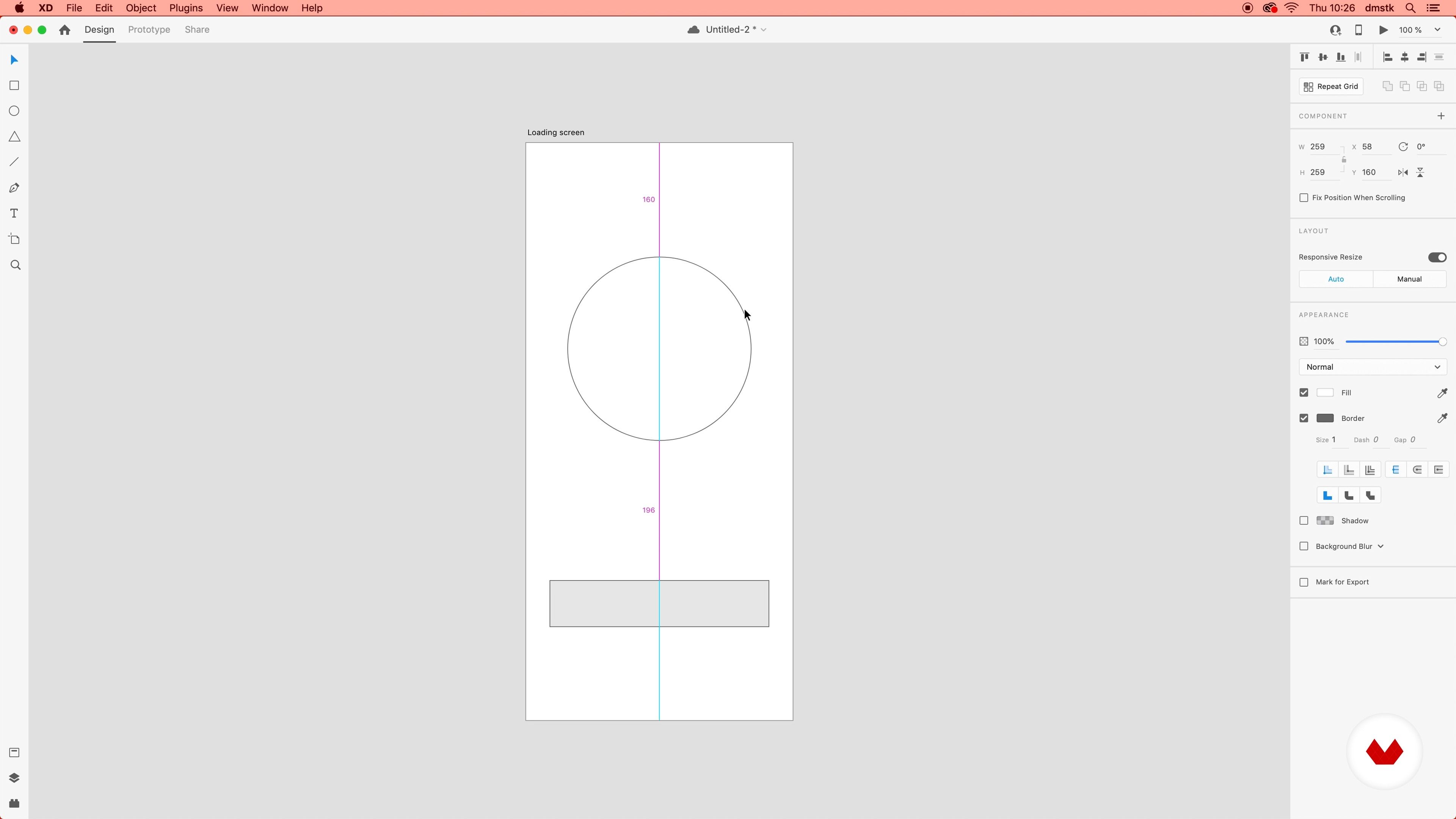 5. To center a shape, use the Select tool to move it. A line will appear down the center of the artboard and shape when it is correctly positioned.