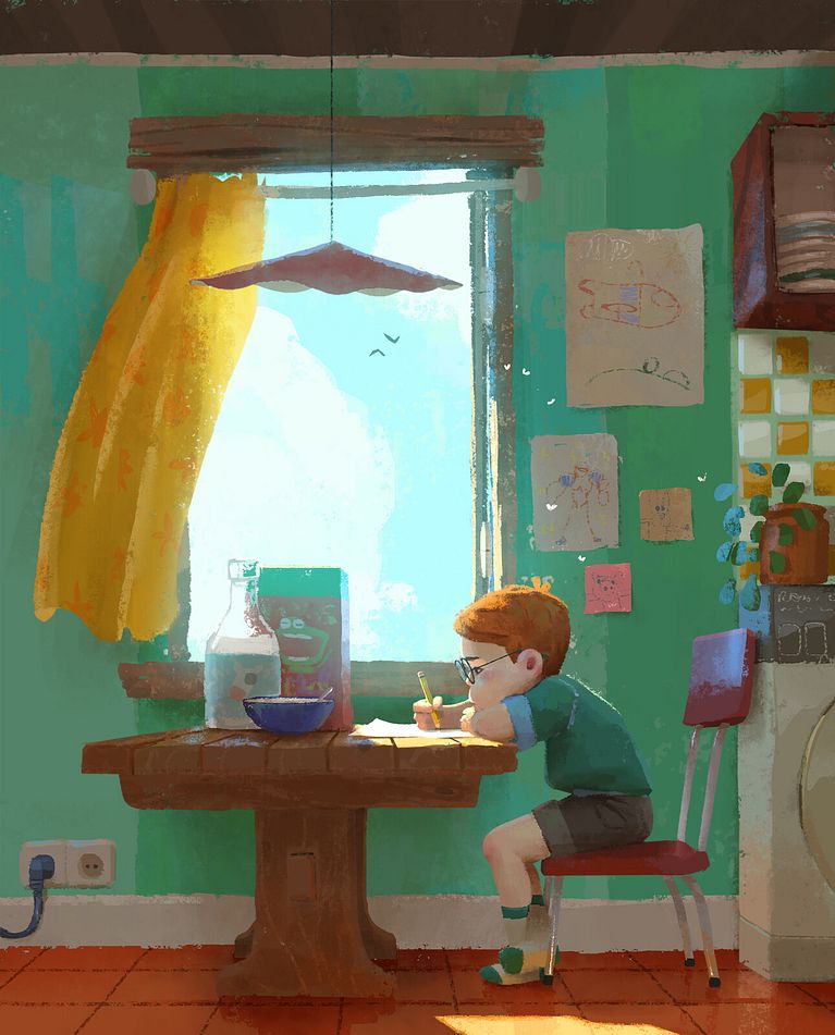 Samuel Smith (@samuelsmith) is a French independent illustrator and visual development artist for animation. As a visual development artist, Samuel’s job is to translate the director’s vision into images, focusing specifically on light and color. He paints color keys–reference images that prioritize details such as lighting and material–that serve as guides for the lighting department so that they can work out how to light a certain scene. Color key artists have similar roles to background artists; however, they focus on these specific details.