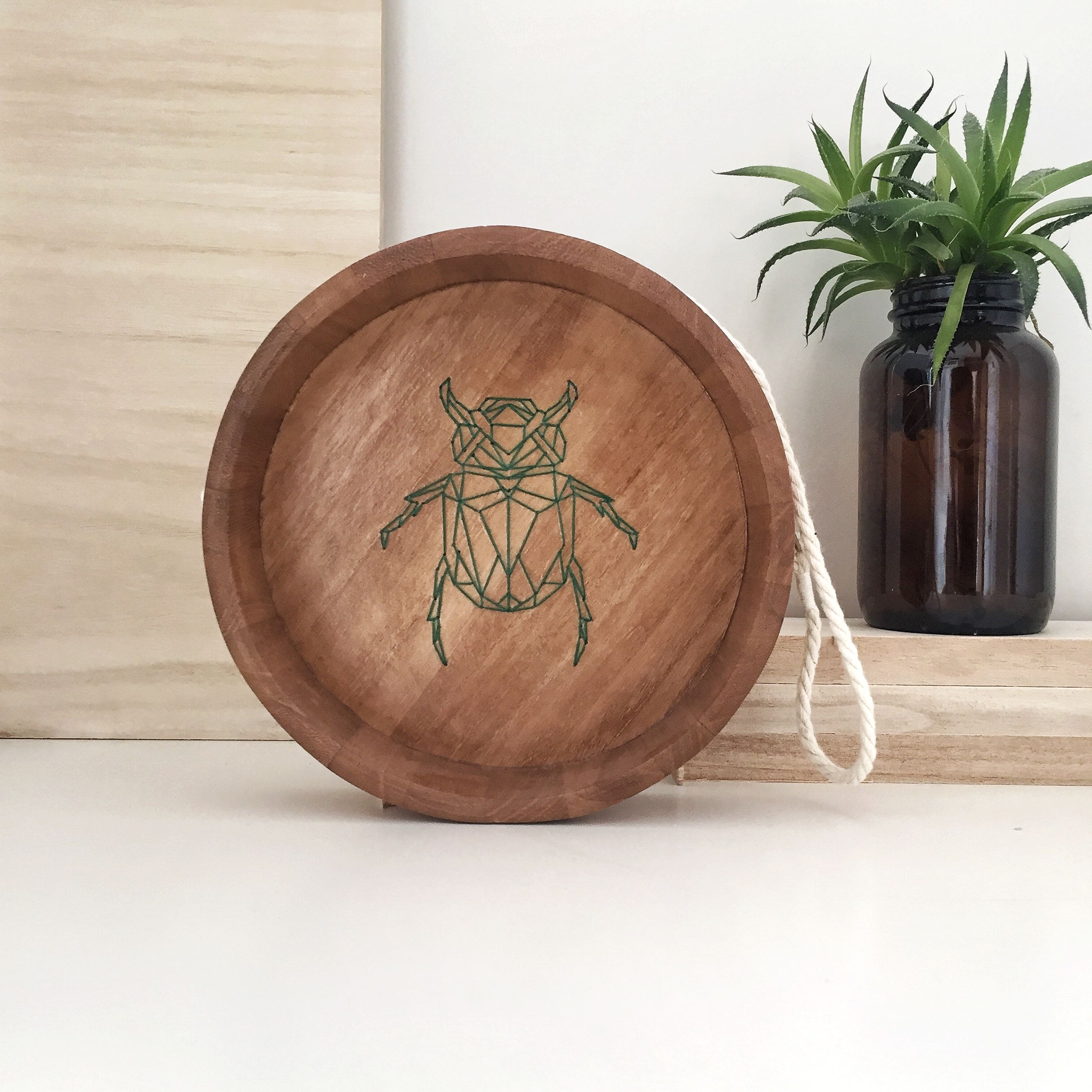 After a friend gifted her an electric fret saw, she began working with wood and quickly bought herself a Dremel tool. She started to combine different crafts and took an interest in string art, which involved hammering nails into wood and then winding thread around them to create unique patterns. From here, Estela decided that, instead of using nails, she would drill holes into the wood and embroider patterns onto it using a needle and thread, taking traditional techniques and giving them a modern twist. She started with simple geometric shapes before moving onto more and more complex designs. She references Umasqu Studio, Gustav Klimt, William Morris, among her influences.