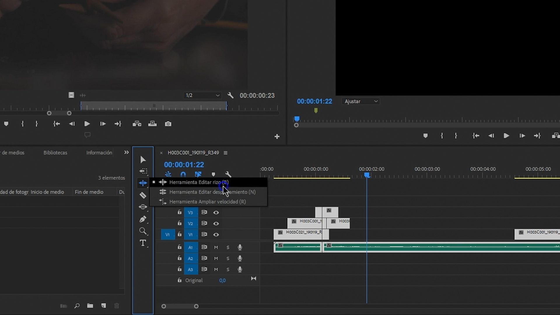This tool increases or decreases the speed of the clips and therefore the space they take up in the work area. If we want to see the exact speed of our clip after modifying it, we can check it by right-clicking on the element and selecting the Speed/Duration option.