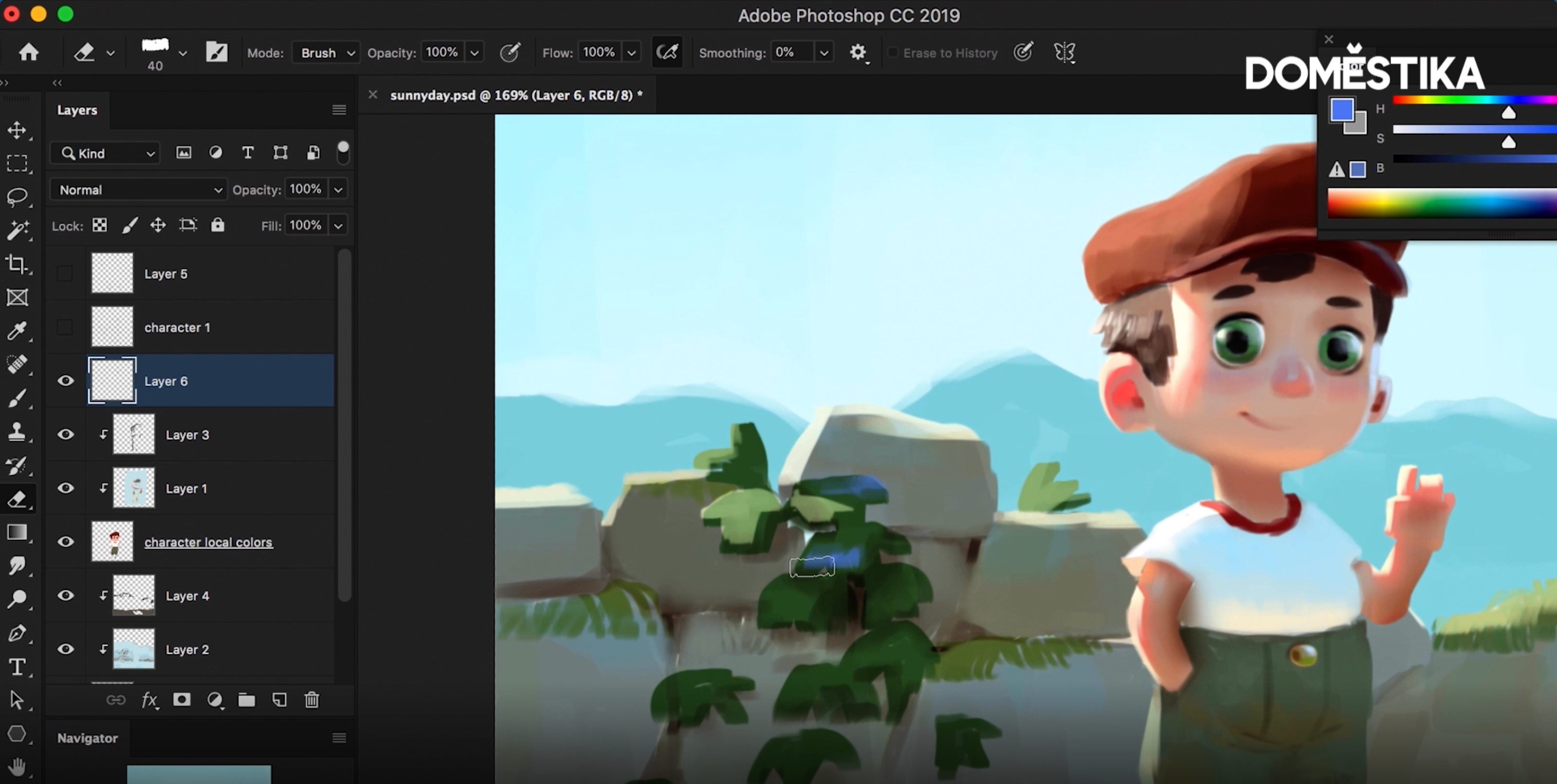 Samuel finishes off this stage of his portrait by desaturating the color of the sky to add some clouds to the scene.