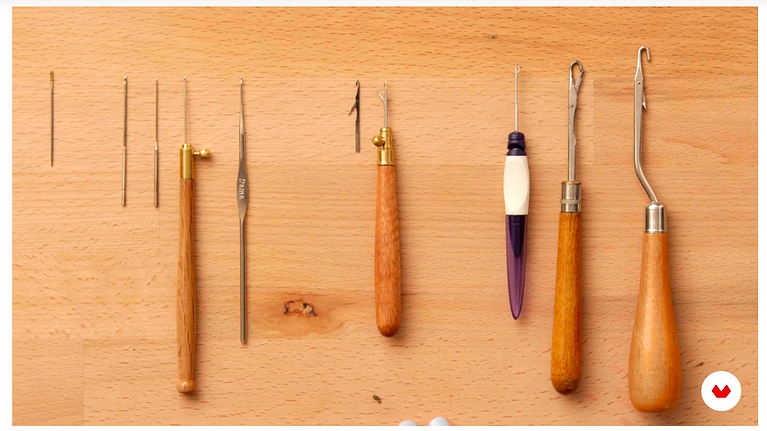 It’s similar to other technical needles that you’ve maybe seen or used: the Luneville embroidery (Tambour or French embroidery) needle, the Indian (Aari) embroidery needle, and the classic crochet hook.