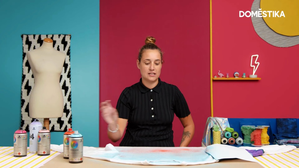 The distance between the spray and the garment will determine the strength of the color. The same goes for how long you spray. Plan what effect you are looking for and use the normal nozzle for a more homogeneous color. If you only want to create softer hue, move the spray can away from the garment as much as possible.