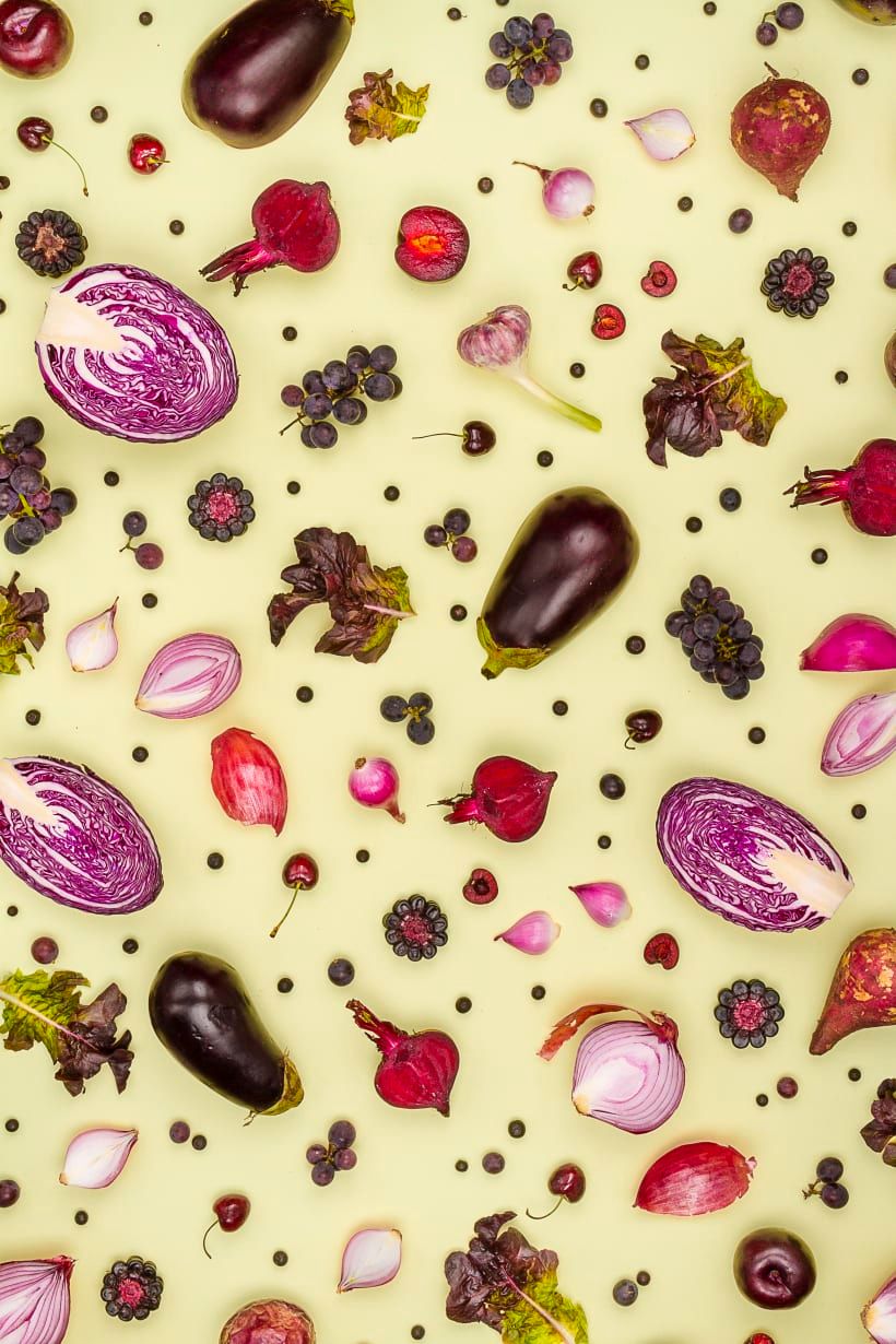 Using a colored background and the ingredients for a meal, you can create these colorful food patterns. Learn more about how to achieve this from Espacio Crudo in the Creating Culinary Photo Series course.