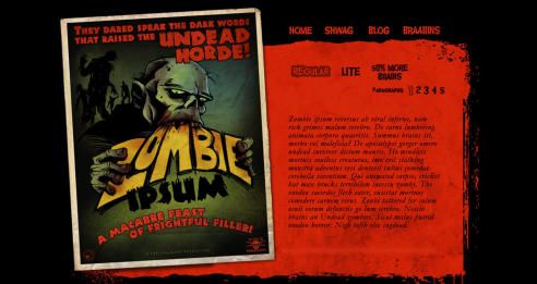 The text generator that any undead person would love to use. Zombie ipsum also gives you the possibility of adding 50% of "brains" to your text. Braaaaains.