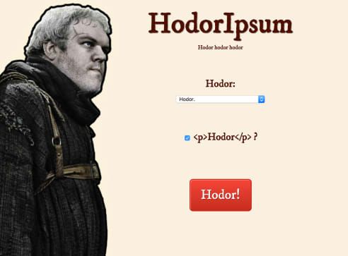 If just reading the name has made you suspect that this Lorem ipsum generator inspired by Game of Thrones will only use one word, you are right. Hodoripsum gives us what it promises: texts generated using the only word Hodor knows how to pronounce: hodor.